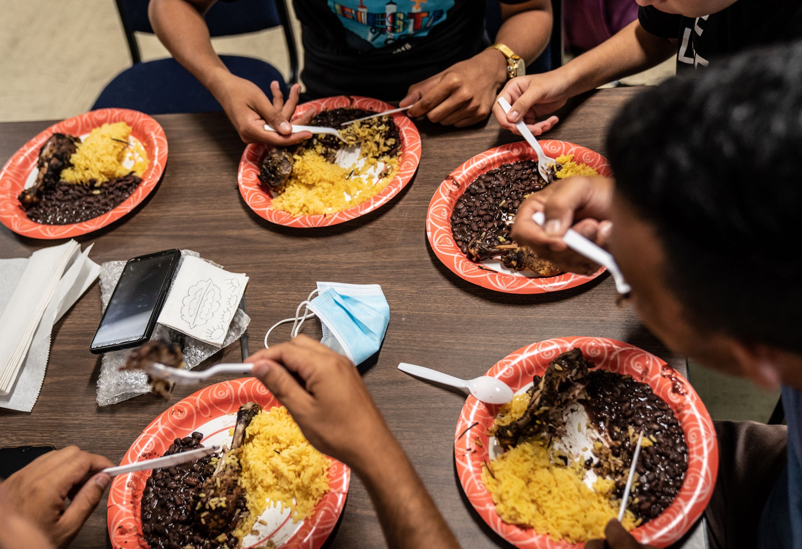 To further sustain the work, migrants who’ve decided to stay longer in D.C. are welcomed to join in on the efforts. Caro arrived at the church one day at sunrise to serve new arrivals food that she prepared herself: scrambled eggs, rice, and beans. She was pleased to see everyone clear their plate.