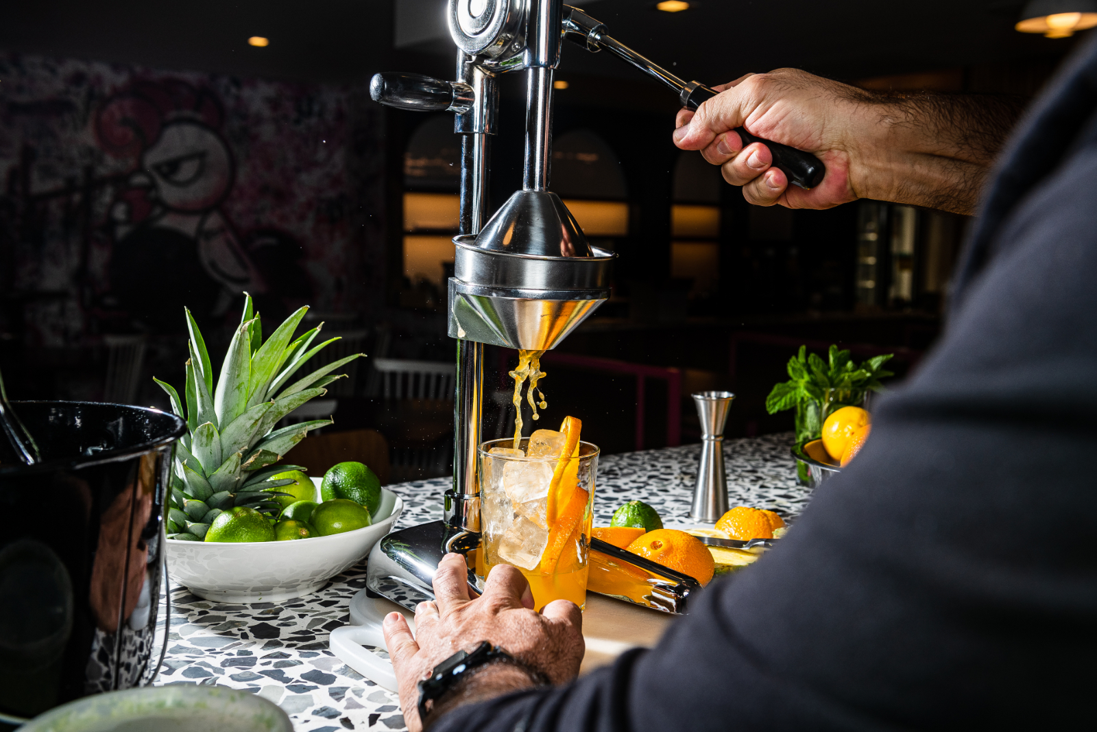 And while the chicken is the shining star of the shop, the atmosphere will make anyone want to stay and hang out for the day. Graffiti-covered walls feeding into an outdoor corridor makes the space feel like you’re hanging out at a block party, except this party has bartenders slinging hand-crafted crushes and frozen pineapple daiquiris. There’s also a giant shuffleboard set up outside to keep guests of all ages entertained.
