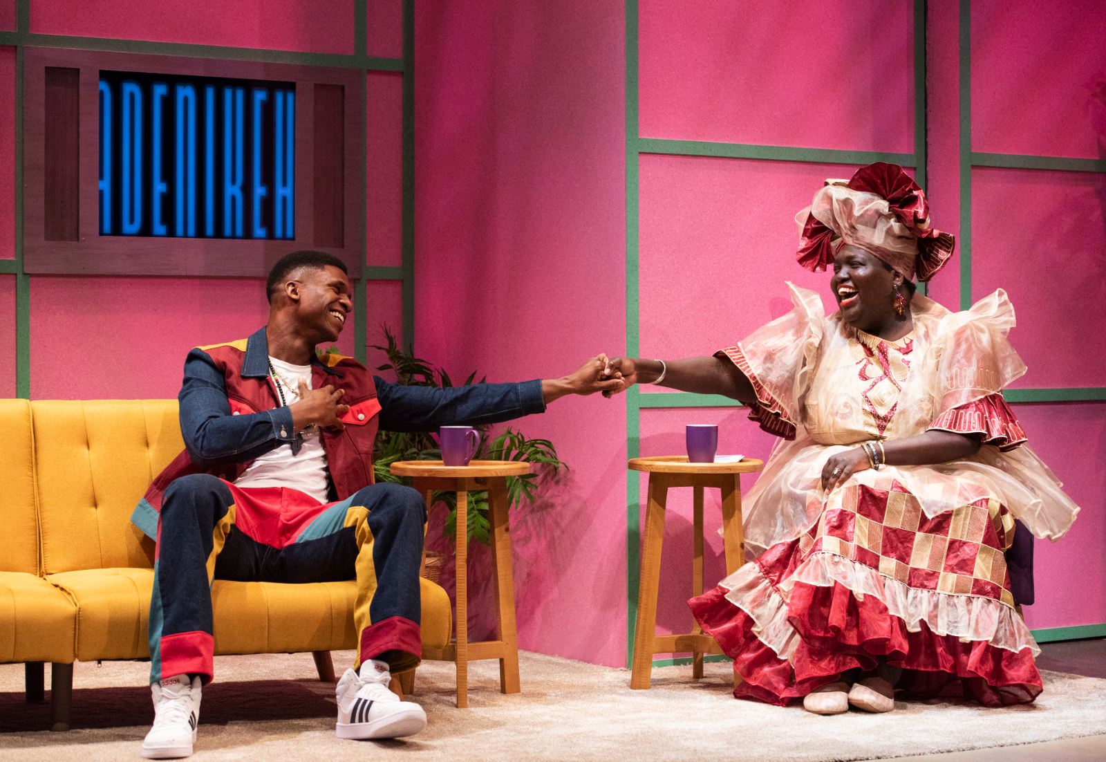 The ensemble cast turns out engaging performances and the chemistry between actors is palpable: the sisterly bickering between Ayamma (an adorable, wide-eyed Ernaisja Curry) and Dede (a hilarious Renea S. Brown), or the smoldering looks that ooze out of Wale (played with boy-band sexiness by Joel Ashur) each time he sees Ayamma. Jacqueline Youm stands out as the larger-than-life TV host Adenikeh, who sports stunning West African head wraps, thanks to costuming by Brandee Mathies.