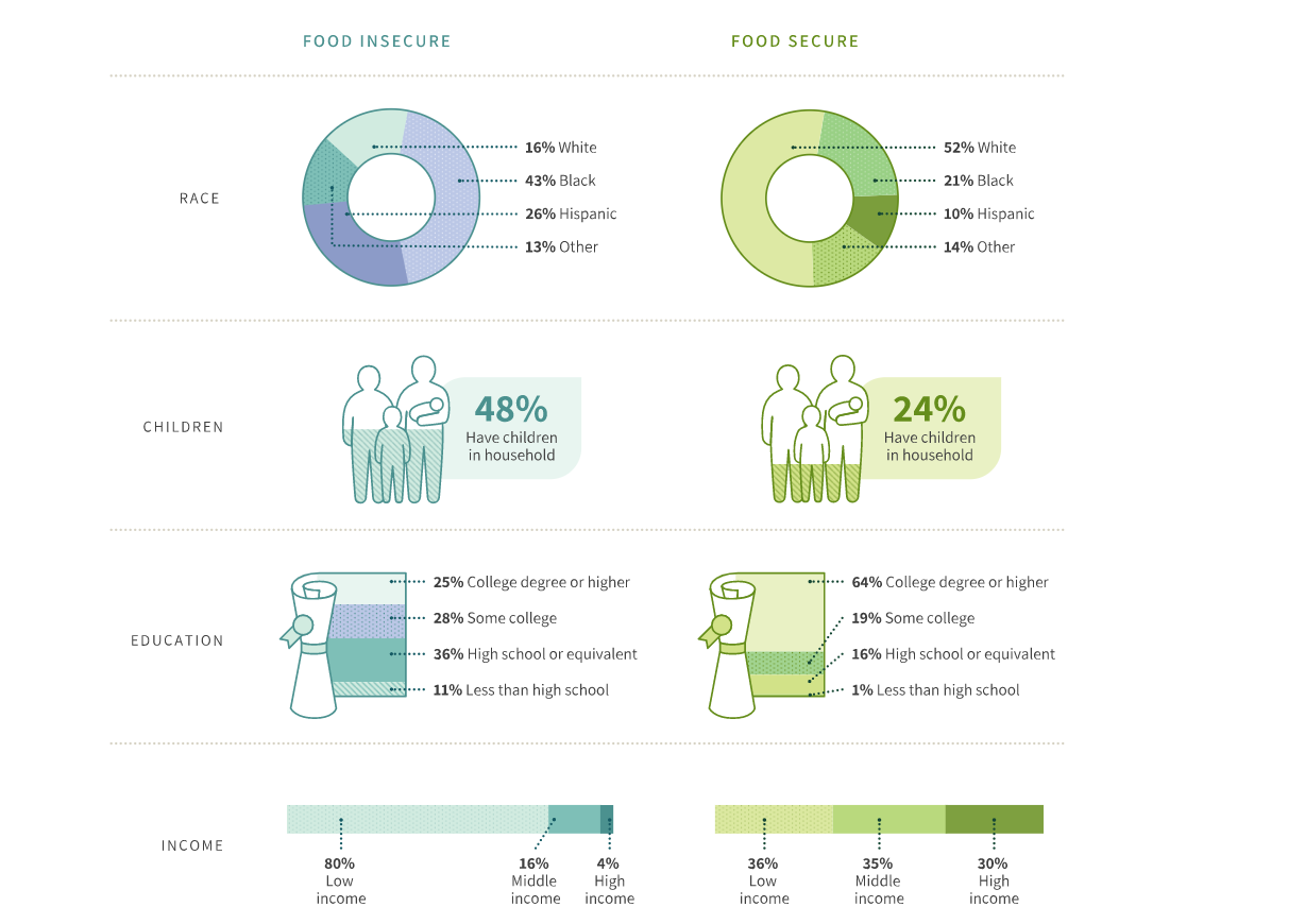 Furthermore, residents experiencing food insecurity were twice as likely to believe that their household finances would decline over the next year — a gap in perception that stretched across race and income as well.