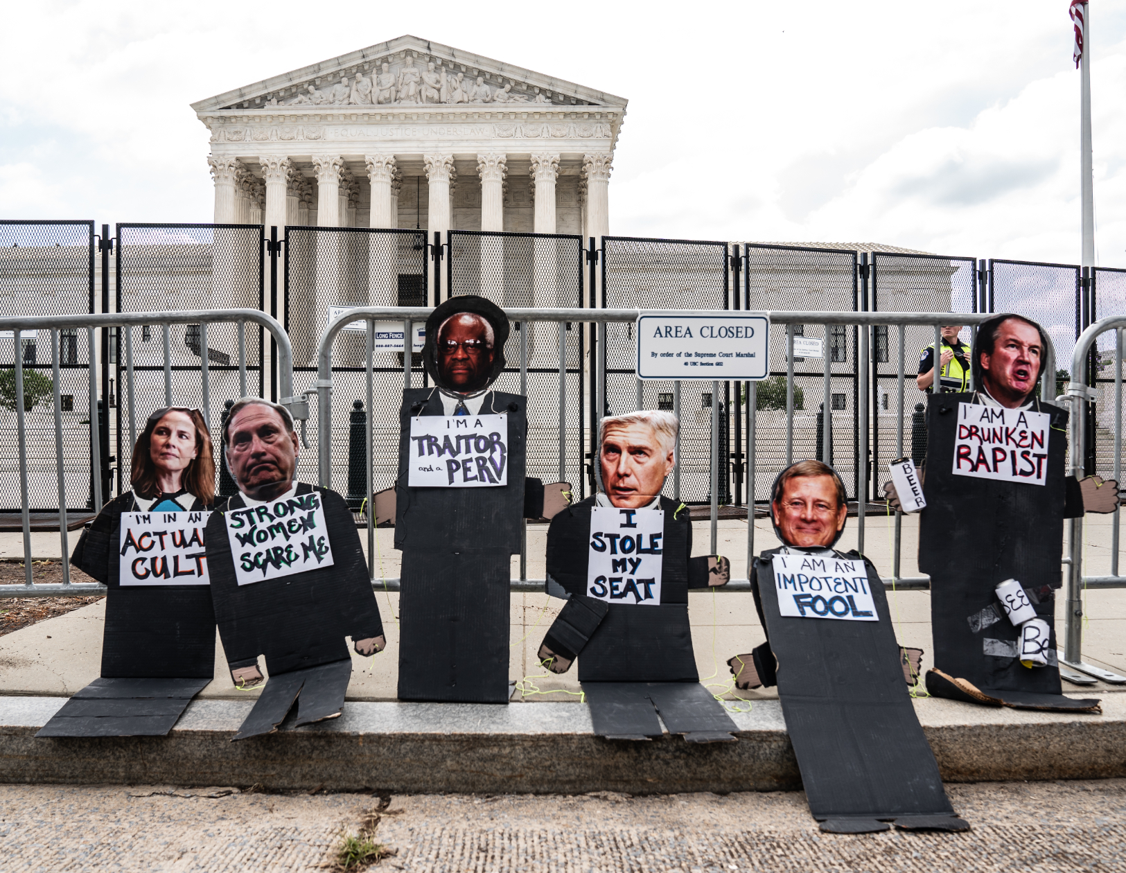 “I have a young daughter and the idea that she has fewer rights than my mother and I did is just so heartbreaking and sad,” said D.C. resident Vida Johnson outside the Supreme Court, where protesters and counter-protesters were staged Friday morning awaiting the decision that’s been anticipated for weeks. While demonstrators remained peaceful, Capitol Police in riot gear made their way into the crowd, joining other law enforcement agencies like D.C. Police.