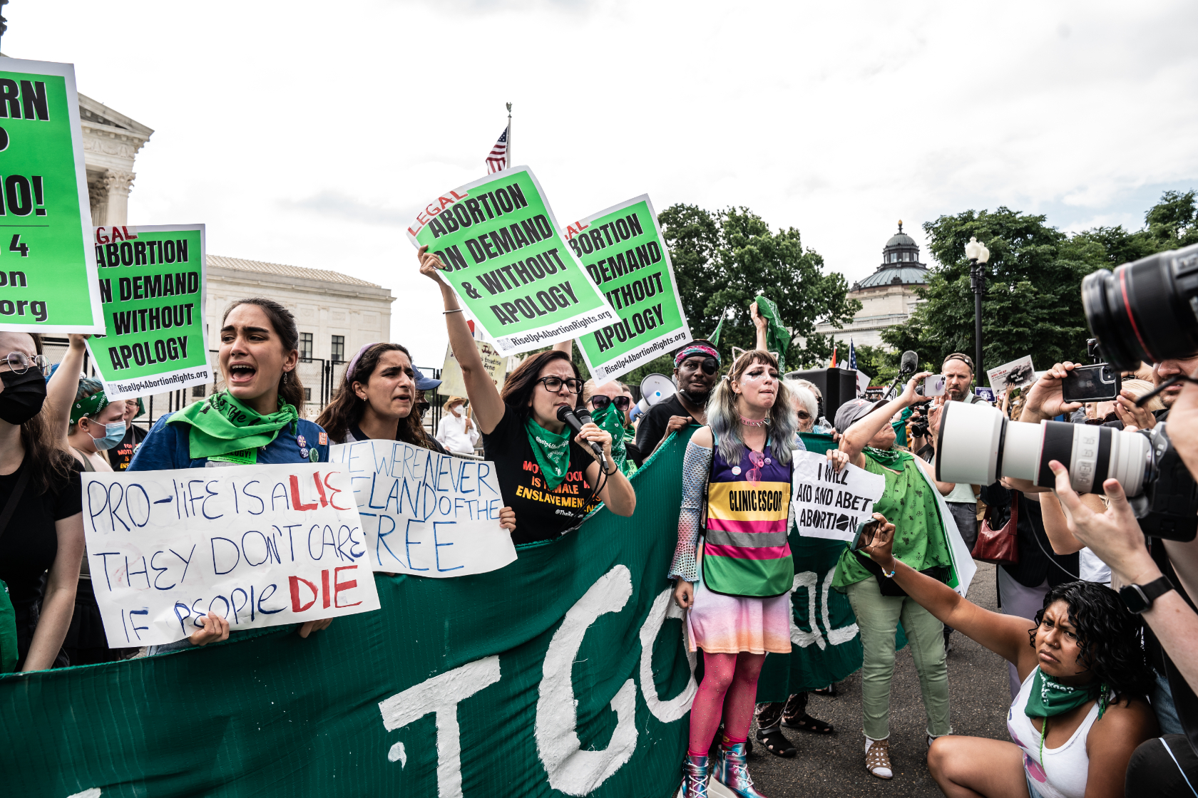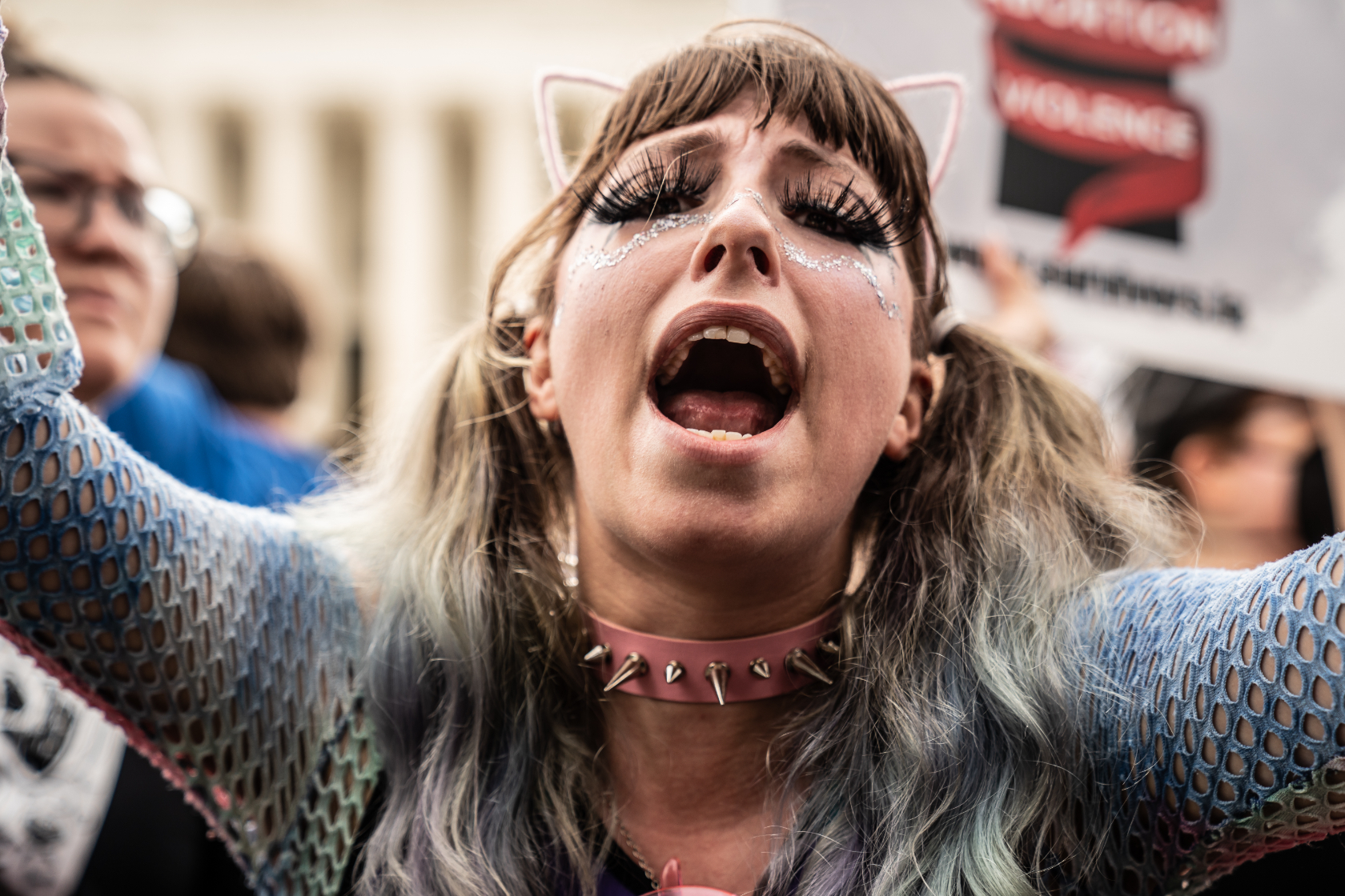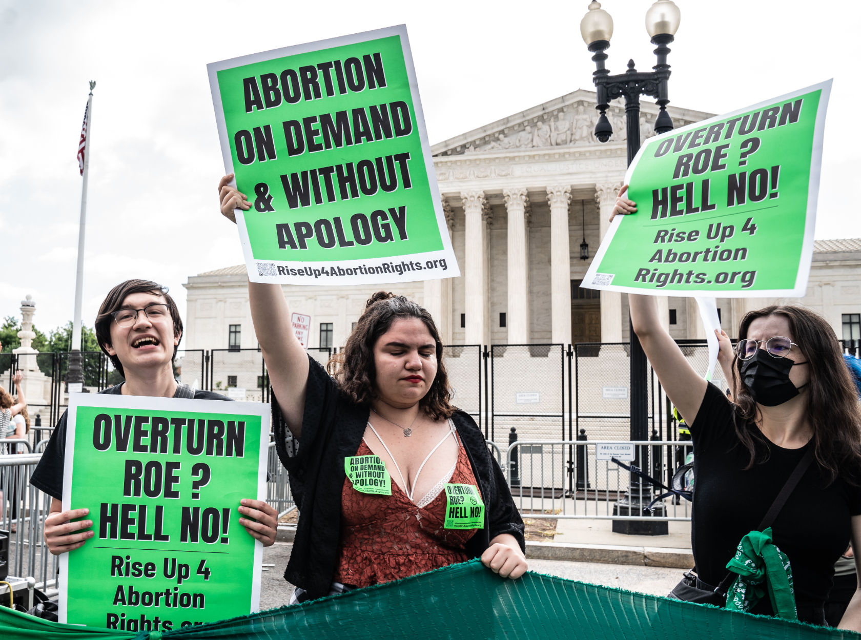 For Capitol Hill resident Nicky Sundt, coming down to the Supreme Court and shouting was the first thing she thought she could upon hearing the news Friday morning. Sundt carried a banner that read “Bans Off Our Bodies,” covered in artful swirls.