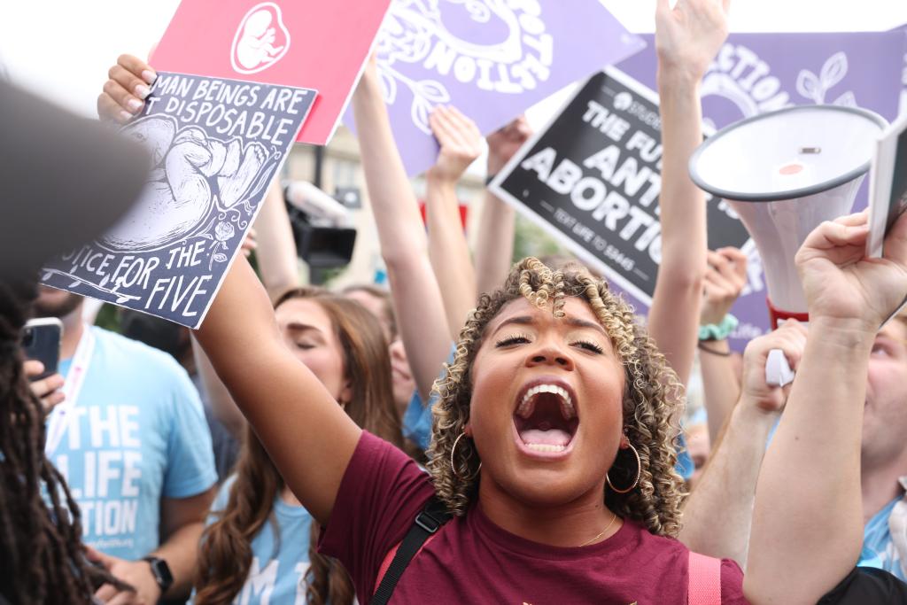 Other locals, though, came out to celebrate the ruling they’d been waiting on for 50 years. Alexandria resident Izzy Stephen said the moment “is absolutely historic, one that I’ve been praying for,” standing near the Supreme Court with her children. A former campaign staffer for Women for Glenn Youngkin, the Republican governor of Virginia, Stephen said she’s hopeful about what the ruling opens up for the future of abortion policy in the commonwealth.