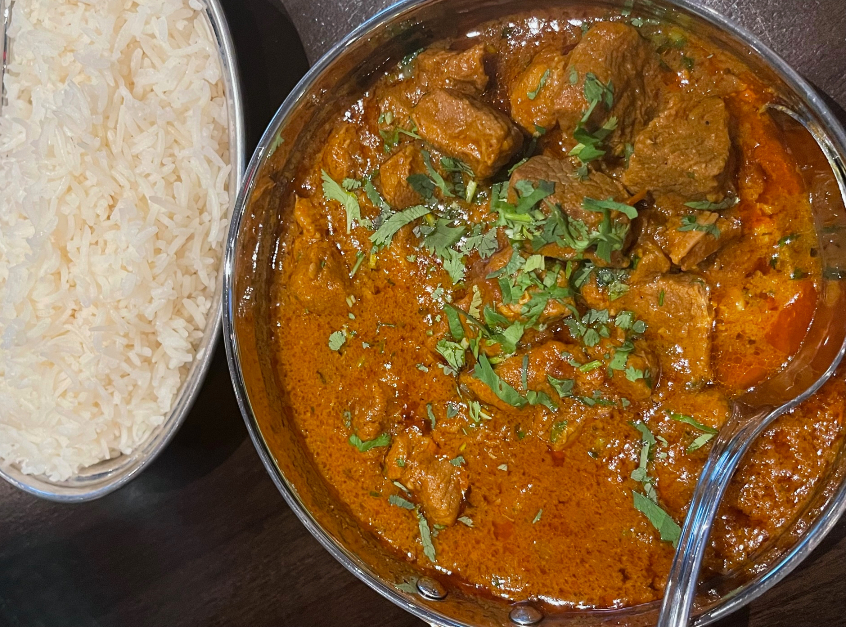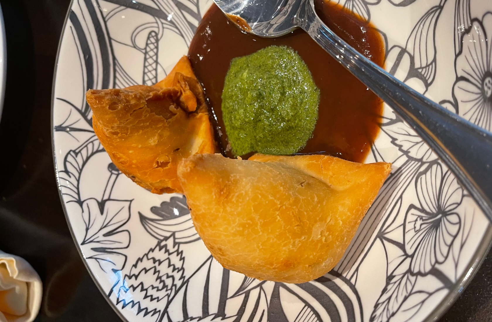 The dinner menu showcases appetizers such as classic Indian samosas — pastries stuffed with spiced potatoes and peas accompanied with a mint & tamarind sauce — as well as sesame tofu, lamb dumplings, and gobi Manchurian, a fried cauliflower dish. The apps are easily shareable and range in price from $6-8, leading some diners this author overheard during her visit to mix and match appetizers to create a full meal at an economical price.