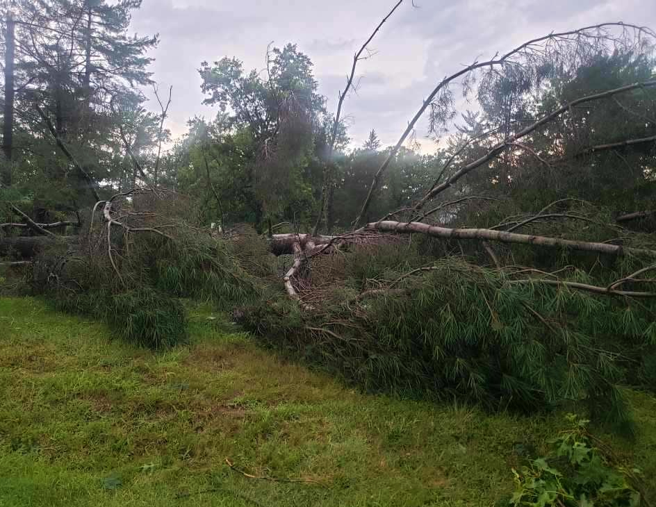 The severe thunderstorm Wednesday night was not a tornado, but still caused multiple trees to fall on houses, roads, and power lines, leaving residents in the dark.