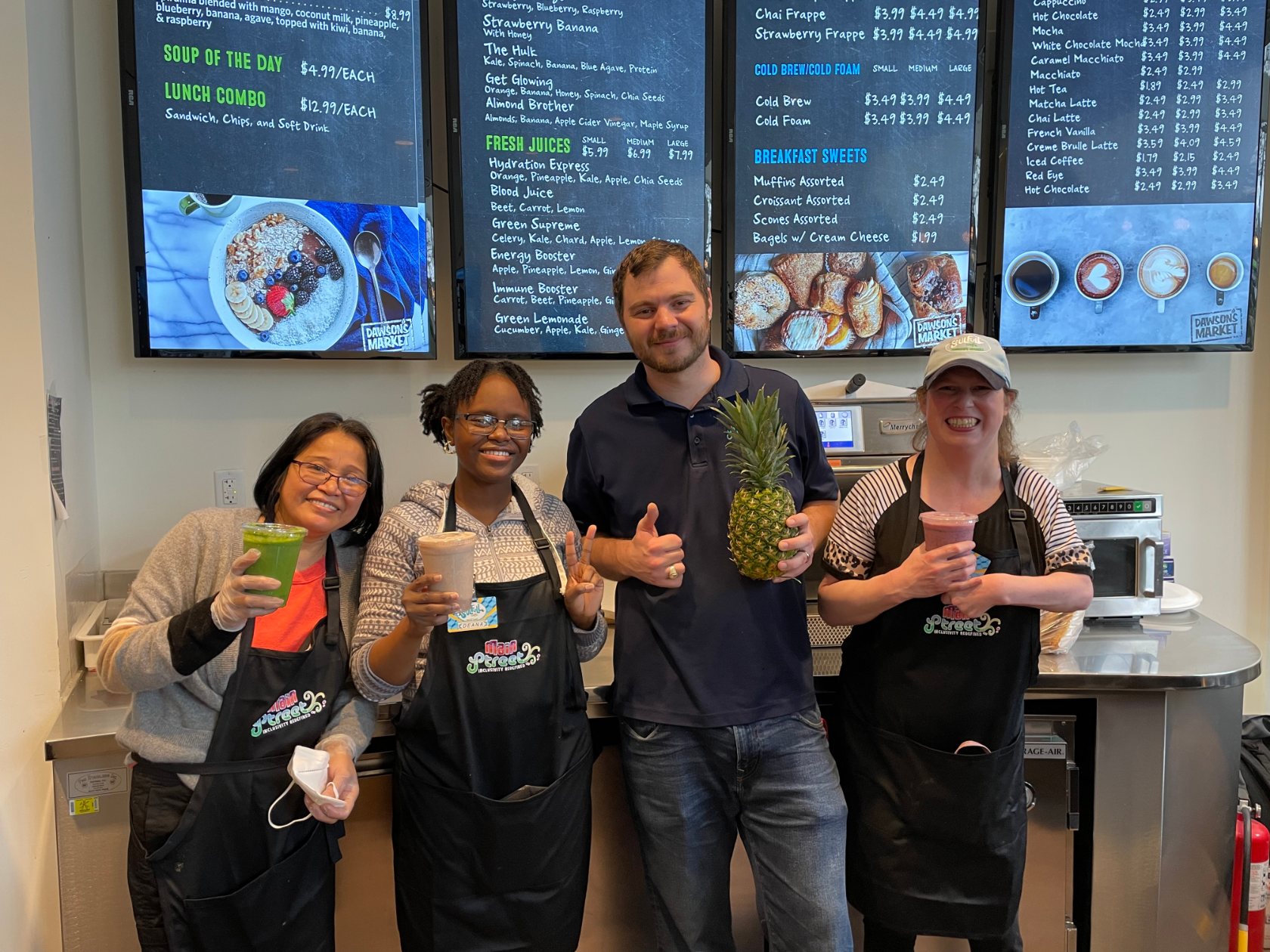 “Dawson’s was doing a great job managing the cafe, but I wanted to connect the cafe to our Main Street programming and have some decision making power,” says Jillian Copeland, founder of Main Street Connect. “We now have specific recipes we use, have a very friendly environment, have a more diverse and creative menu and have different onboarding and training policies and practices.”