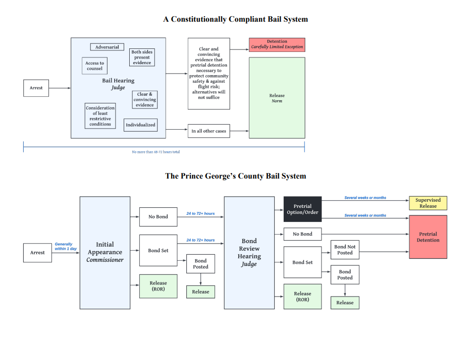 “Every night, hundreds of people are jailed awaiting trial in Prince George’s County, Maryland, despite the absence of any legally sufficient order that they be detained,” the complaint reads. “These unlawfully jailed people comprise approximately one-third of the entire population of the Prince George’s County Jail.”