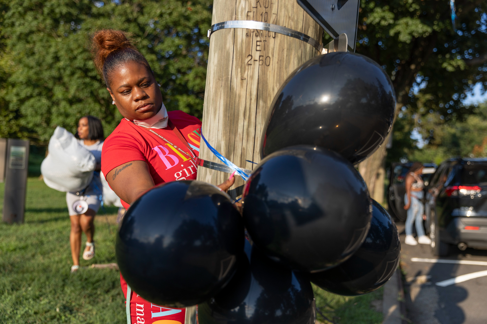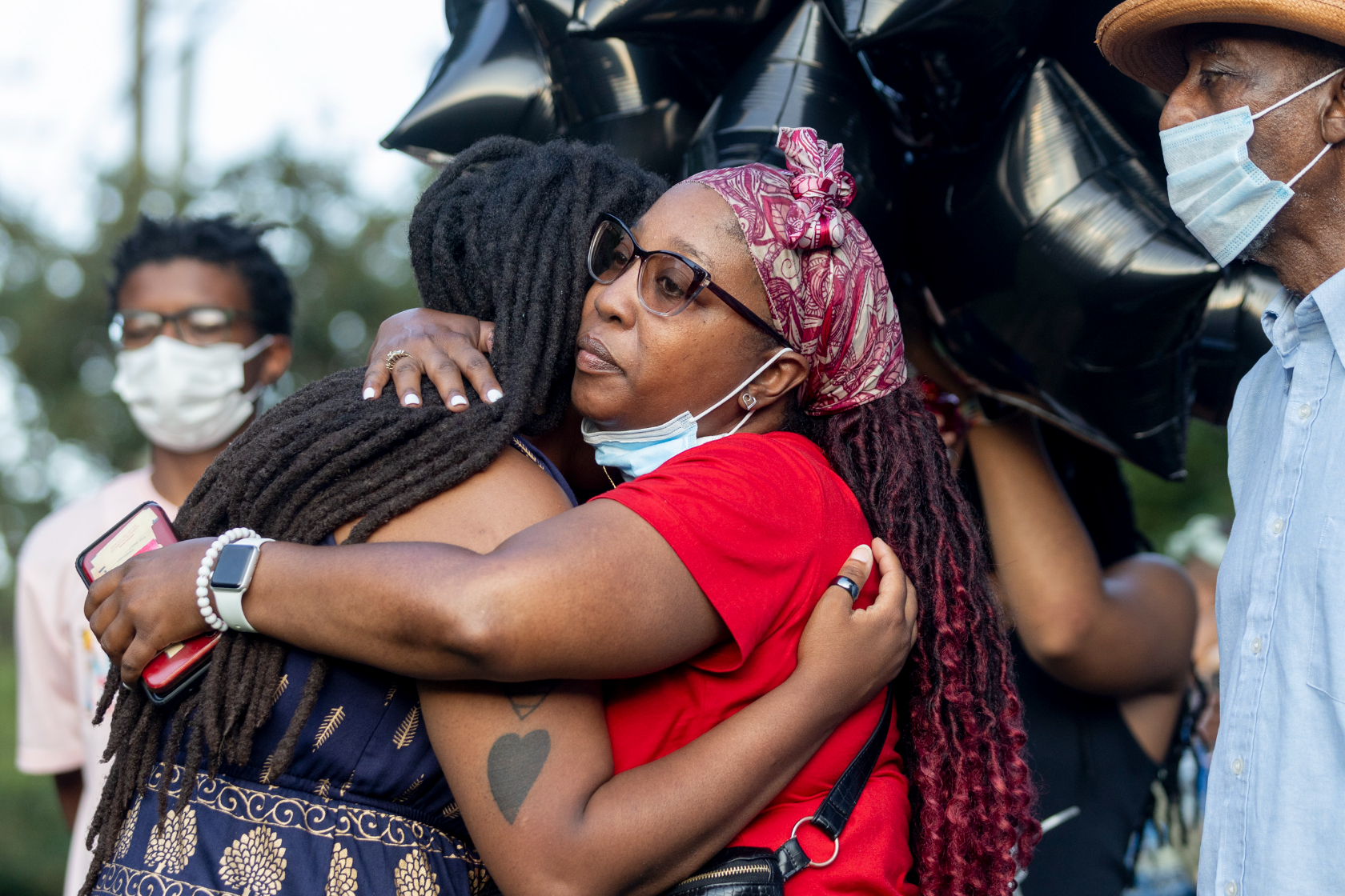 Yet, mixed between the tears was laughter and dancing. “Let this be a celebration of his life,” said Nee Nee Taylor of Harriet’s Wildest Dreams, a local Black-led abolitionist group fighting state-sanctioned violence. With Wiz Khalifa’s “See You Again” playing, the candle-lit crowd looked skyward at the blue and black balloons drifting up towards the clouds.
