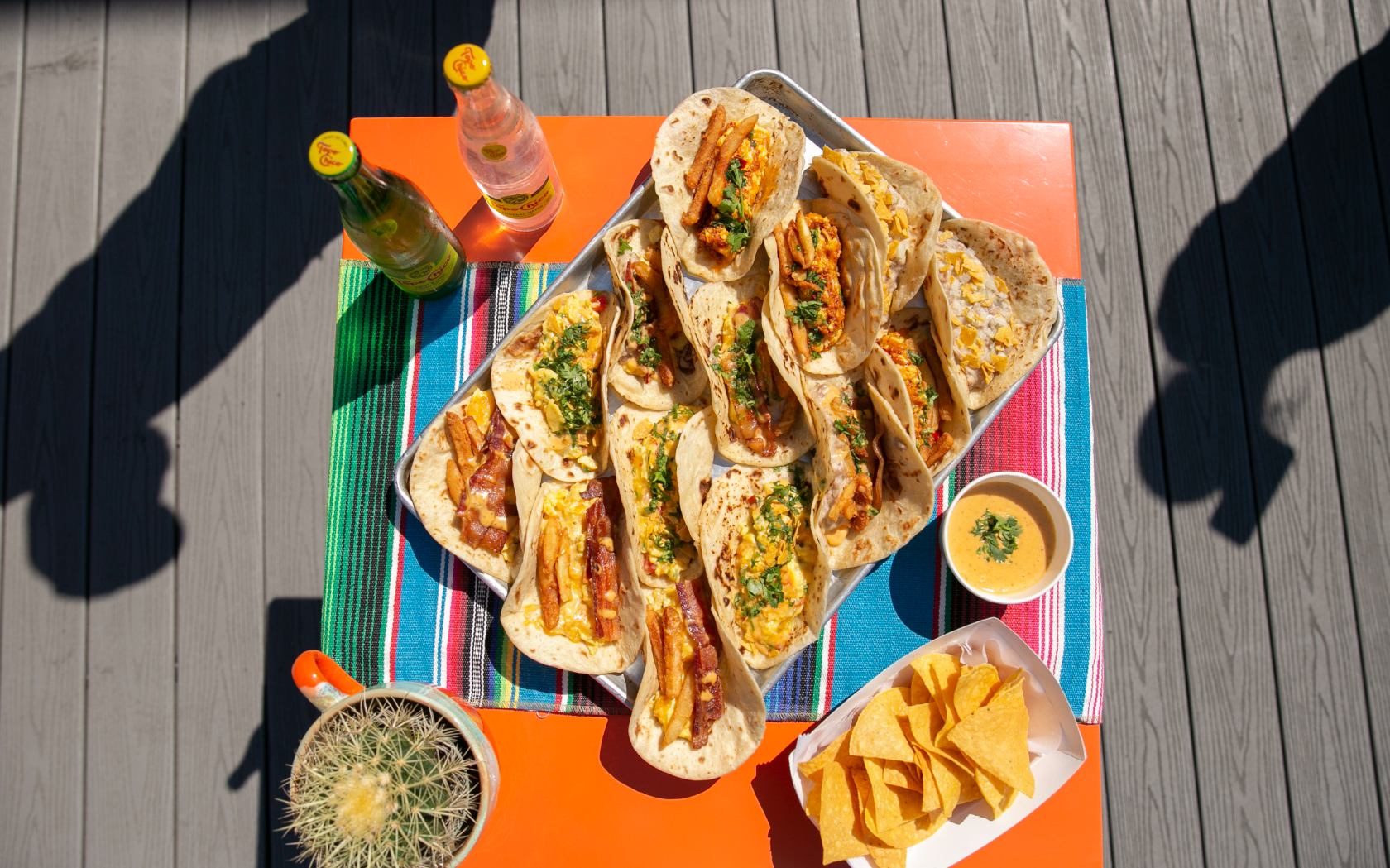 La Tejana will offer five different breakfast tacos to start, including their best-seller “The 956.” Named after Jaramillo’s hometown area code of McAllen, Texas, it features a house-made flour tortilla, cilantro, bacon, fried potatoes, refried beans, scrambled eggs, and queso drizzle. They offer a vegetarian option too: “Super Migas,” which is made with the house-made flour tortilla, cilantro, diced poblano, onion, scrambled eggs, tomato, queso drizzle, and crunchy tortilla strips. Salsas that are automatically on the side include cilantro crema and charred tomato, but patrons can request a new addition, spicy habanero.