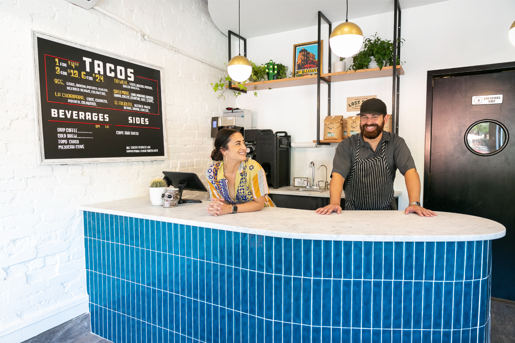 The brick-and-mortar will have the same tacos their fans devoured at the pop-ups, plus drip coffee and cold brew sourced by Lost Sock Roasters as well as Topo Chico and Mexican Coke. Over time, the owners will add to the menu, including with baked goods like conchas. They have bigger hopes for the fall: a liquor license (so they could sell margaritas and micheladas), a dinner menu (featuring quesadillas, nachos, and cheesy gordita crunches), and indoor dining upstairs to contrast the counter service below at the coffeeshop/taqueria. (At first, there will just be limited outdoor seating and a counter inside for people to stand at and eat their tacos on site.)