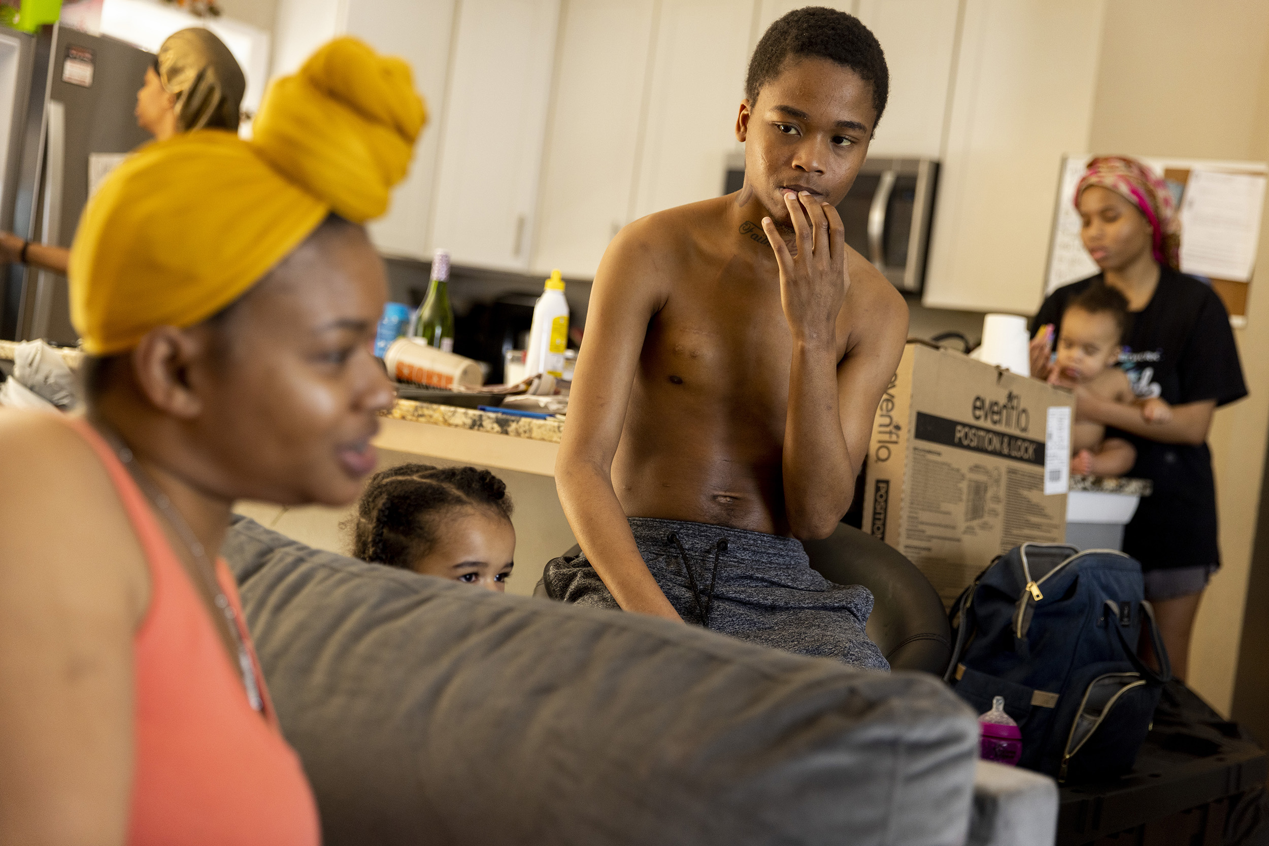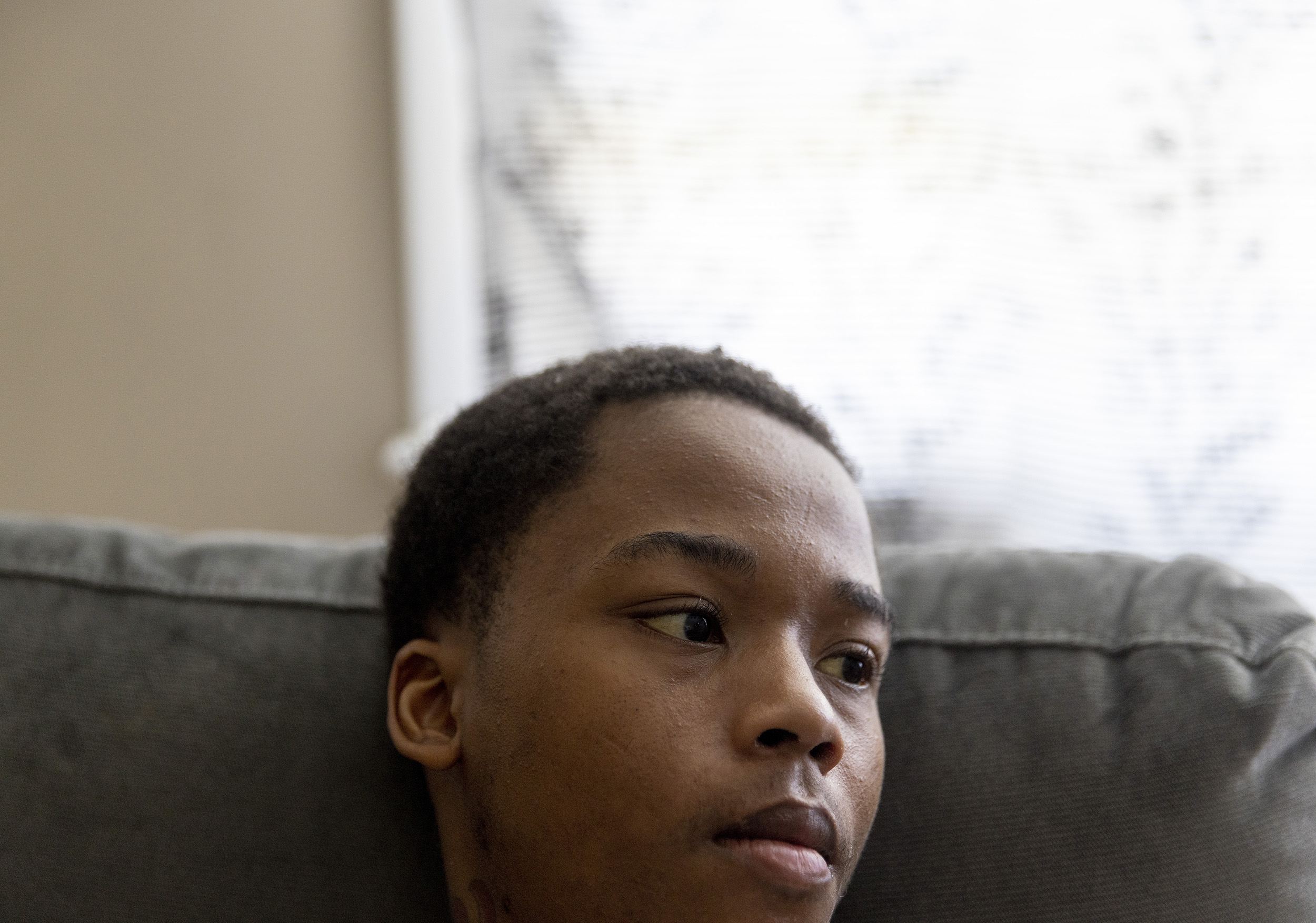 Samuel Price, 14, lives with his mother Annette Price in D.C. Price is much younger than the Sheffields and experiences sickle cell differently. “If you just imagine, like, somebody scratches you and they rip skin off, it’s similar to somebody scratching the skin off,” he says.