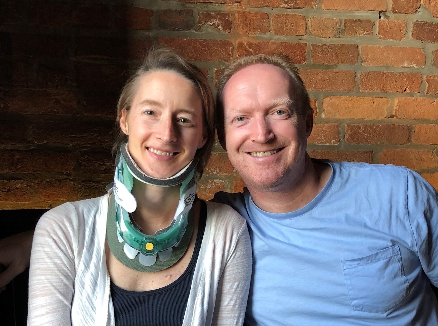 So my husband … actually wasn’t here that day. He got a phone call from the EMTs saying that I was in the ambulance on the way to the hospital, and they could not tell him what my injuries were, but they just knew that they were significant. The impact on him was by far the worst day of his life. I couldn’t have done this without his support… his advocacy. He knew me and he knew how to communicate for me when I couldn’t talk for myself. The poor guy wore himself out. He stayed up at night to push my pain pump button for me. It shows real love. He was amazing.