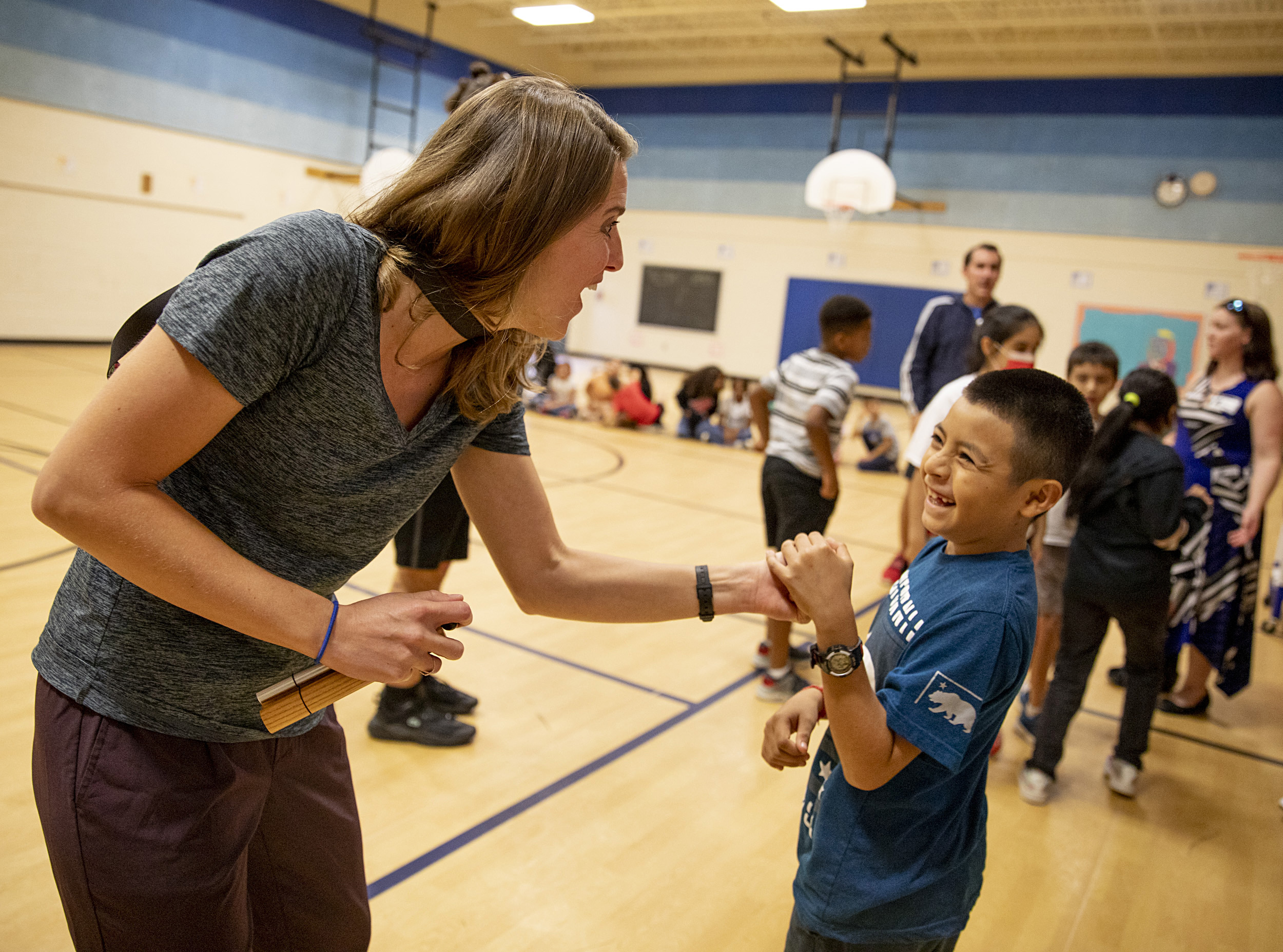 Brod is working on slowing down to try to get kids back on track. Sometimes literally: at the end of each class period, she has them all practice a moment of (mostly) quiet mindfulness, cross-legged on the floor.