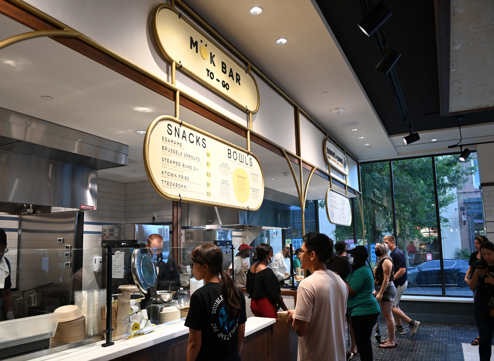 Mökbar: This modern Korean stall from New York chef Esther Choi offers made-to-order ramen and rice bowls featuring proteins such as Korean bibimbap, chicken katsu curry, and crabby shrimp.