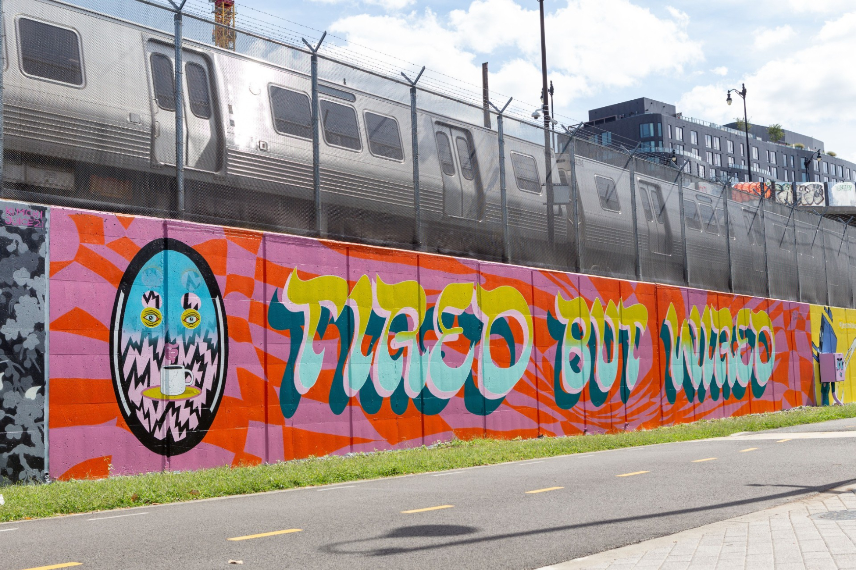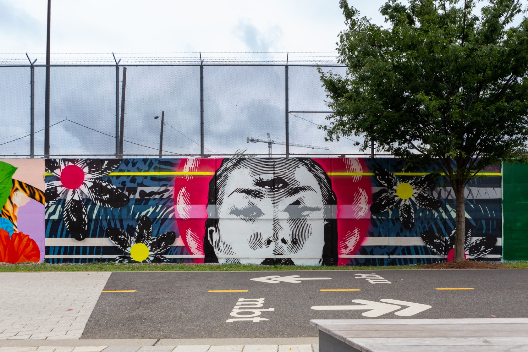 Formerly known as Pow! Wow!, the annual DC Walls mural festival transforms buildings and walls into canvases. Launched in 2016, the festival installs the art throughout Northeast D.C., with the main mural thoroughfare placed along the Metropolitan Branch Trail (MBT) on the wall that divides the Metro tracks from the new Alethia Tanner Park. Each year, new murals are painted on that wall; other murals painted as part of the project often stay up for years.