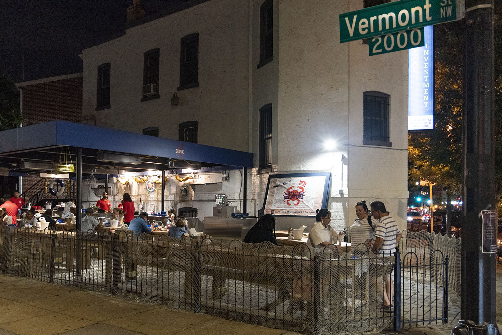 The only thing missing at Chesapeake Crab Shack is the shack itself. The all-outdoors spot — a patch of land at the corner of U Street and Vermont Ave. NW that previously housed a pop-up from Service Bar — is easily spotted with its brown paper topped tables. Enter the gates and find more decor reminiscent of the crab shacks found up and down the Delmarva peninsula: think fishing nets, life rafts, and buoys, as well as a casual bar area lined with white stools that would be at home dockside.