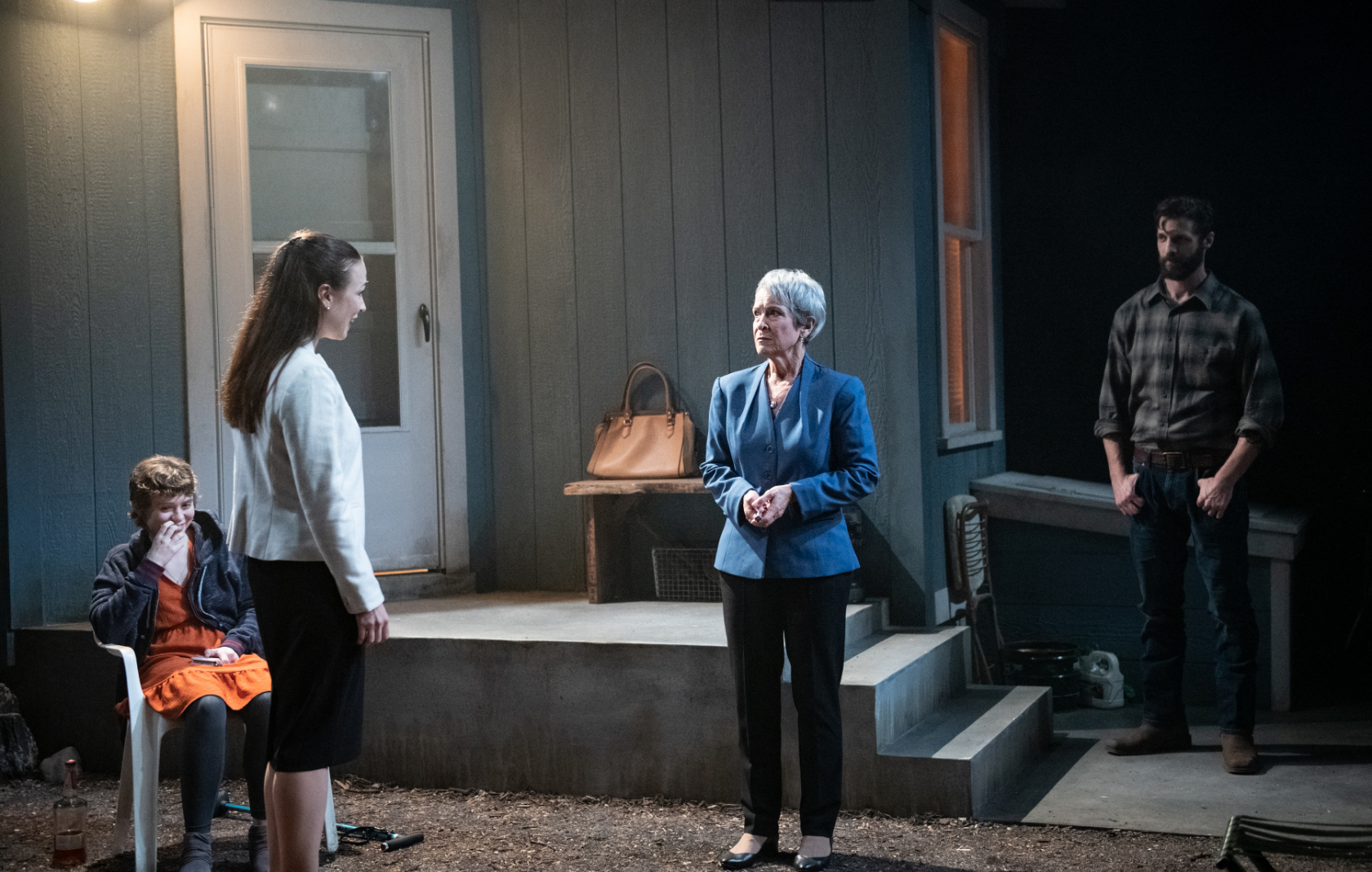 Meanwhile, what is haunting Justin, the gruff woodsman who begins the play with a surprising act of violence? And then there’s Teresa (a magnetic Laura C. Harris), a self-professed Steve Bannon fan and Tomi Lahren copycat who writes for a right-wing website and seems ambivalent about her picture-perfect fiance.