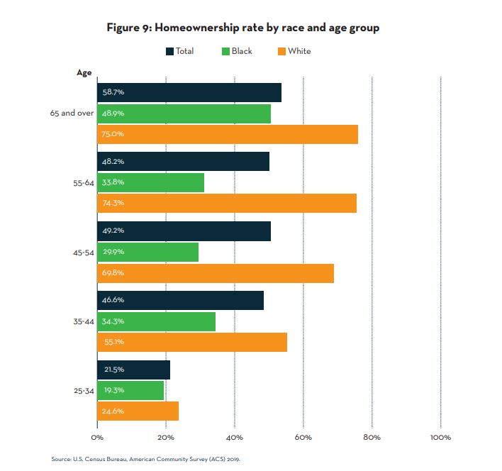 “The combination of redlining, racial covenants, and discrimination in lending that barred Black residents from the government-backed mortgages available to white families deprived D.C.’s remaining Black households of the economic gain homeownership can bring,” the report says. “These early policies continue to have reverberating effects.”