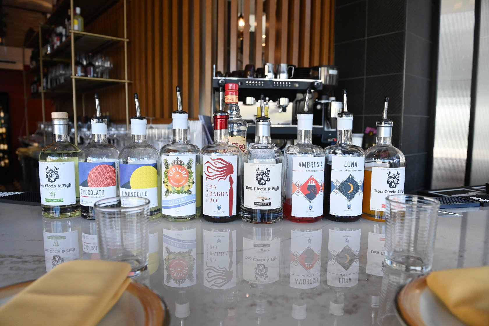 “Pane” and “vino” are Italian for bread and wine, and they are represented on the menu too, with focaccia bread made in-house, rustic, sourdough bread they buy locally, and a list of more than 50 bottles of wine from all over the world. Matarazzo rounds out the aperitivo bar drinks menu with a short cocktail list that includes a Marcellino Negroni and a “Paper Plane Flying to DC,” both of which use bitter spirits from local distiller Don Ciccio & Figli.