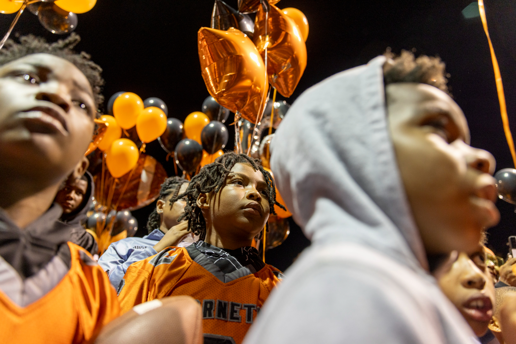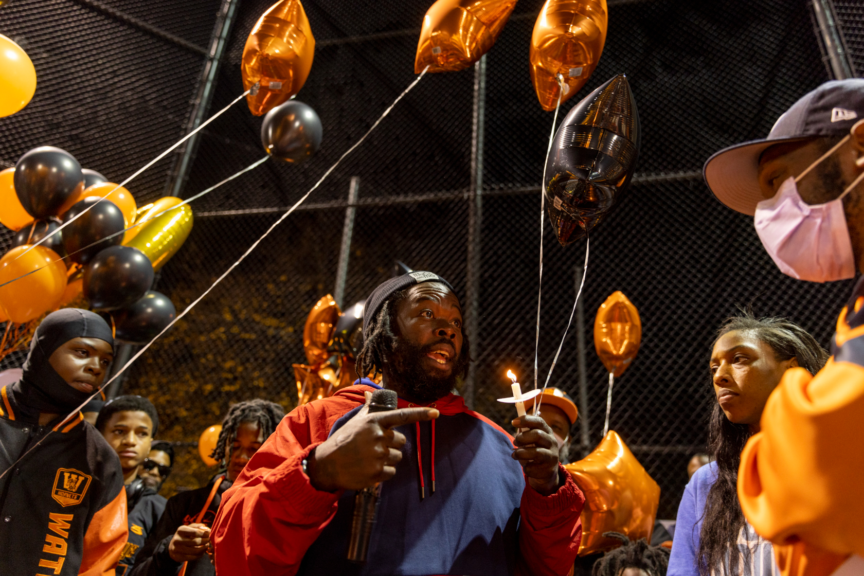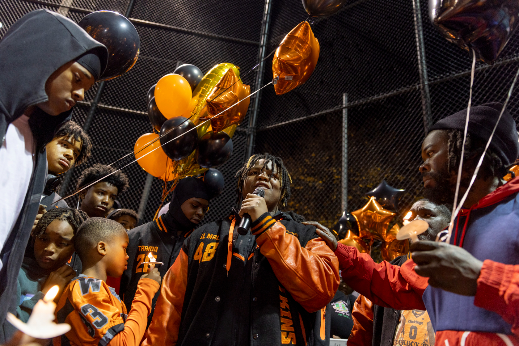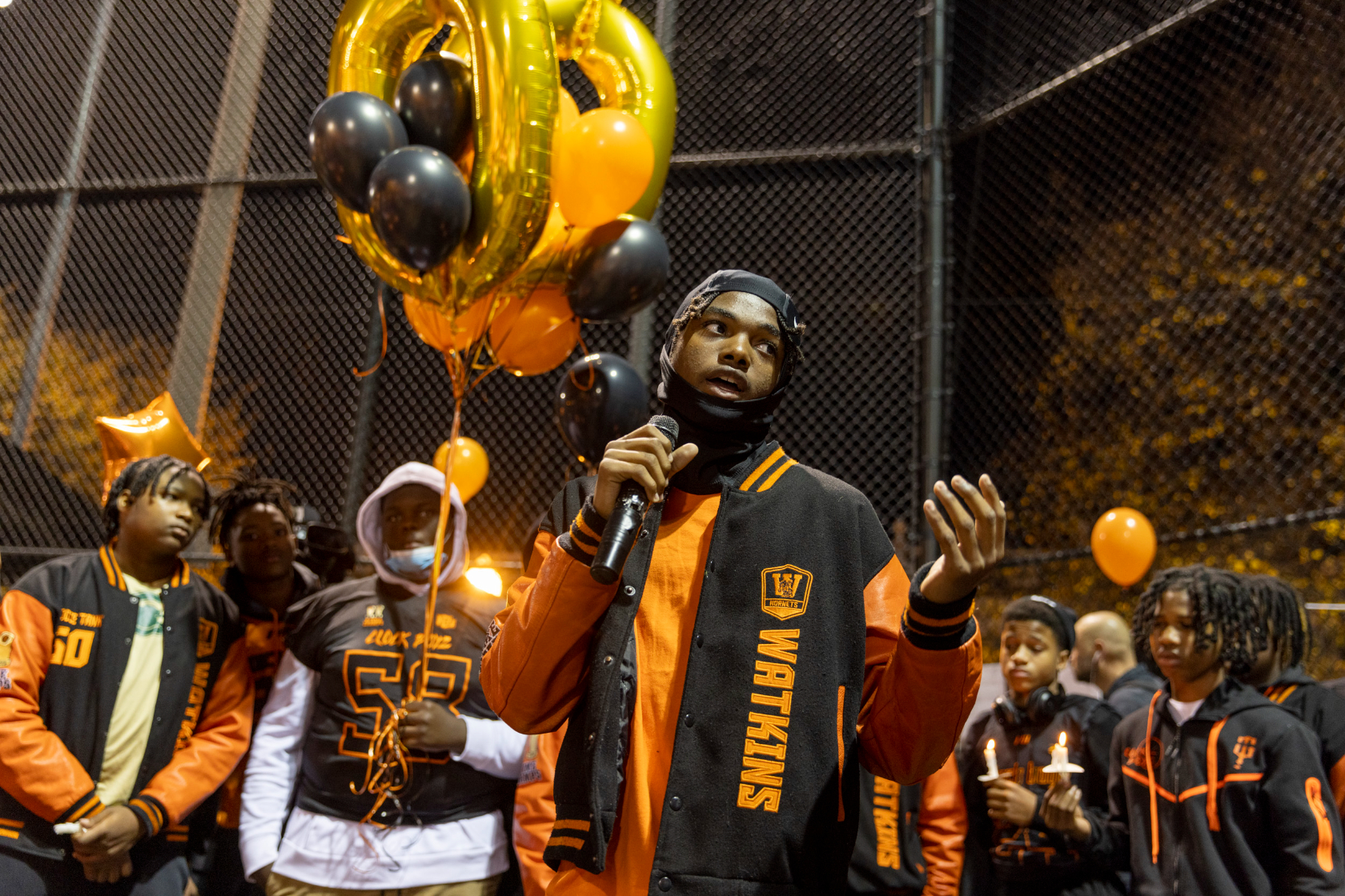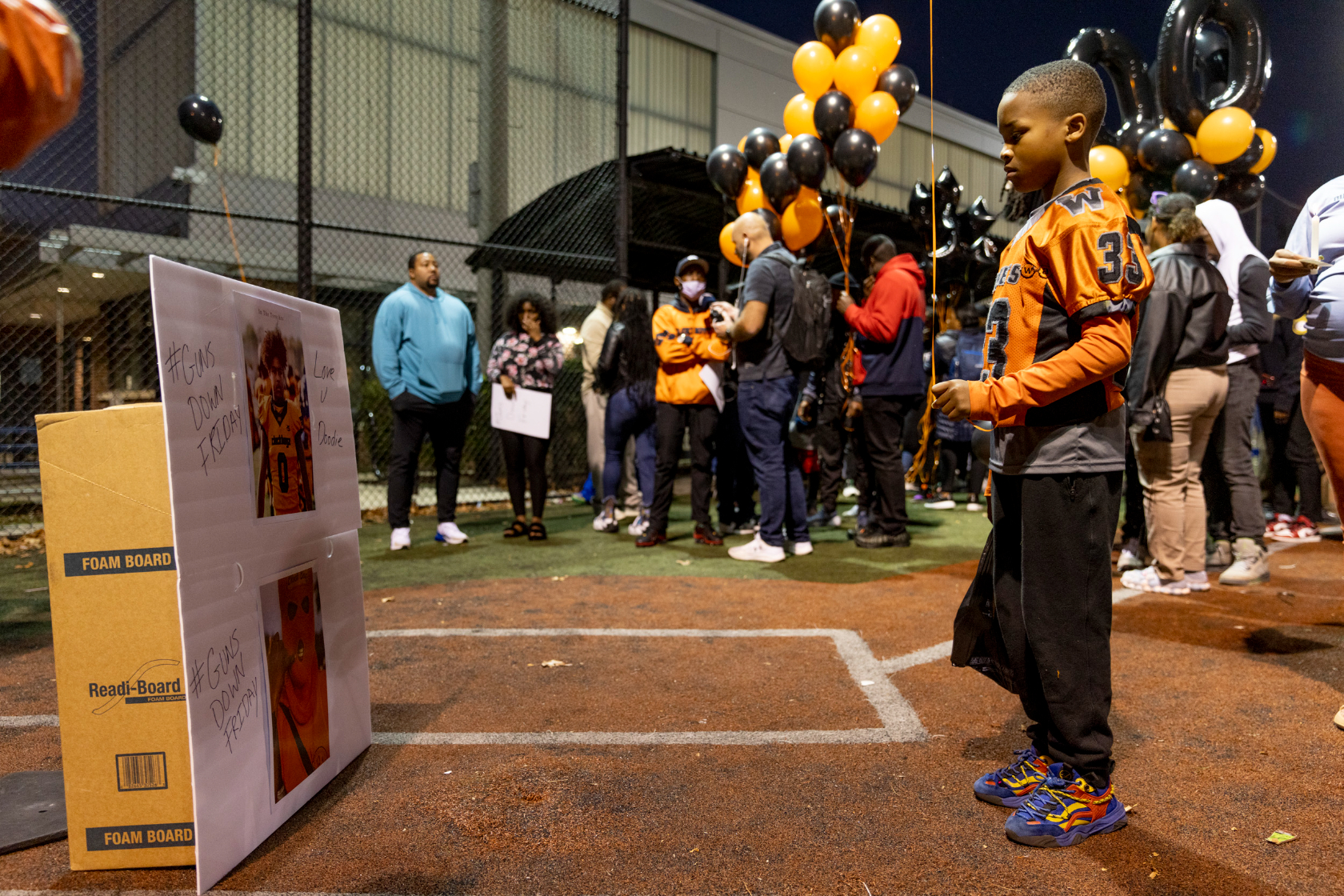 Antione’s approximately 35 other teammates, along with their families, coaches, and about 100 others from across D.C.’s youth football community, gathered on Thursday night to honor Antione’s life. They shared memories, prayed together, cried together, and released balloons in his honor at the Watkins Elementary School field in Capitol Hill, where Antione practiced with the Clockboyz four nights a week for years.