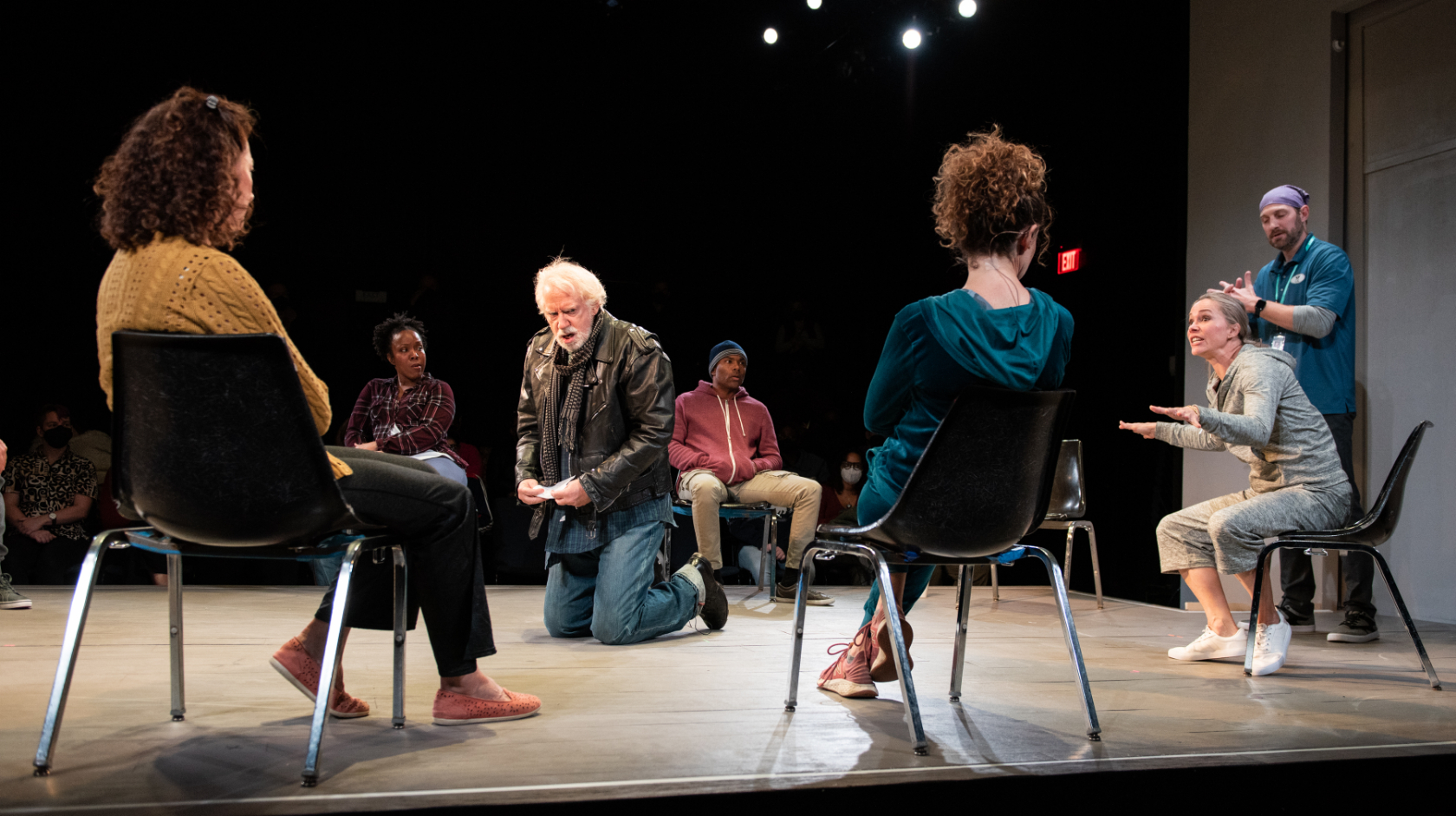 Macmillan’s play might be called a recovery story. After a disturbing incident in the theater, Emma (Kristen Bush) finally recognizes her addictions and checks herself into a hospital. She goes through a painful withdrawal period, after which doctors (all played by Jeanne Paulsen) encourage Emma to stay in a 12-step program. She reluctantly agrees, and forms a tenuous connection with Mark (Jahi Kearse) as they role-play conversations addicts must have with their friends and family.