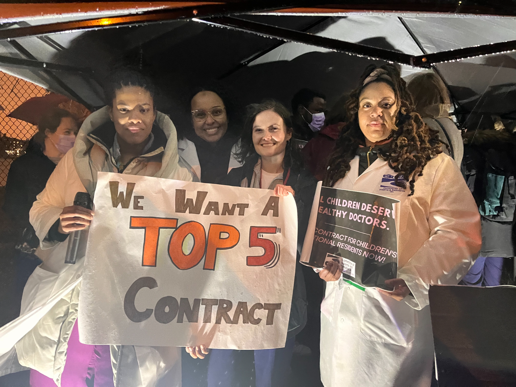 Organizers of the demonstration are a part of the Committee of Interns and Residents, a union local of Service Employees International Union (SEIU) which represents more than 22,000 interns from across the country, including in California, New York, Florida, and D.C. The 120 members at Children’s National are up for a contract renewal this year and residents say they’re demanding pay that reflects inflation, better mental health care, paid sick leave, more long-term hires to fill staffing gaps, a transportation budget, and, most importantly, limits to the number of patients a resident cares for at once.