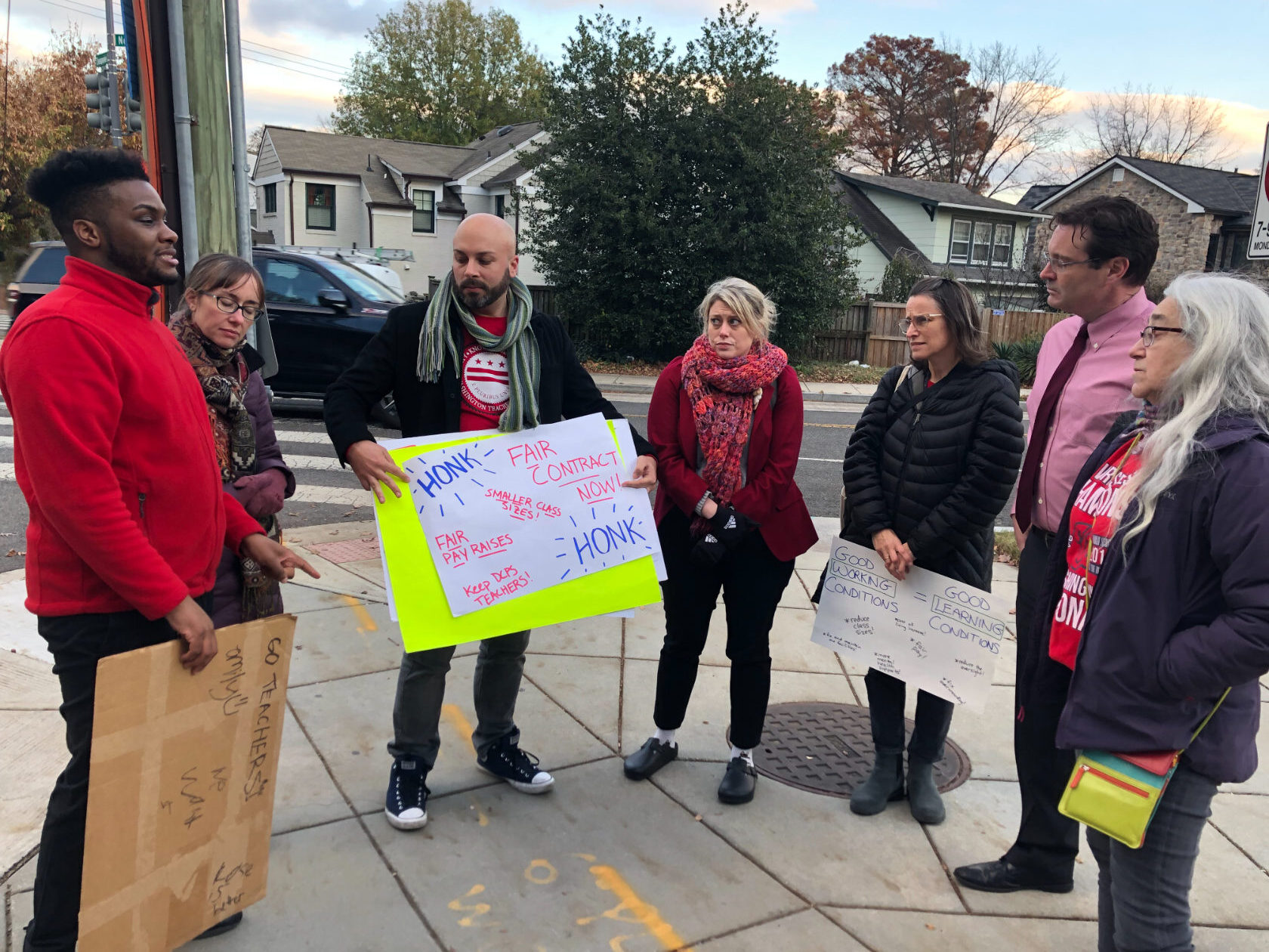 D.C. teachers held demonstrations at at least five schools across the city after school on Thursday, continuing their push for a contract after their last one expired in 2019. At one school, they chanted slogans like, “Support your teachers, support your students,” and waved signs that declared “FAIR CONTRACT NOW!” and “GOOD WORKING CONDITIONS = GOOD LEARNING CONDITIONS.”