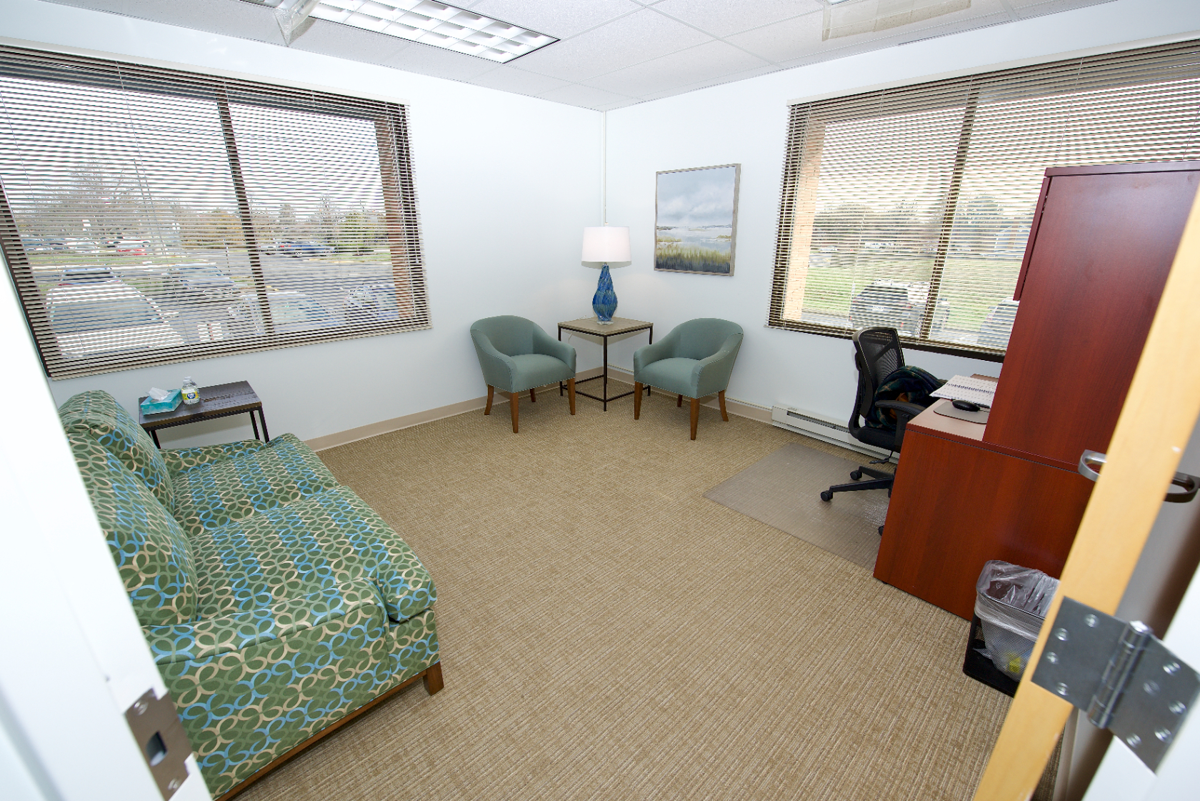 Located in Leesburg, right next to an Inova Emergency Room, the outpatient clinic was quiet last Tuesday morning, with empty therapy rooms painted in soothing blue tones and decorated with calming artwork. The site is focused on short-term therapy, offering 10-12 weekly or biweekly sessions for clients, with plans to expand to group therapy in the future. For now, the clinic has two therapists on staff but is planning to hire up to six to start, and hopes for more if demand increases.
