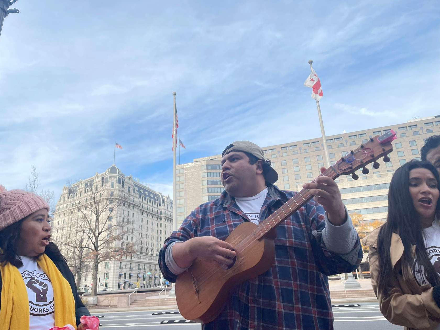Organizers set up a tent and tables on the sidewalk of Pennsylvania Avenue NW. Along with Sosa’s antojitos, vendors sold winter hats, jewelry, weaved goods, and fresh coconuts. Members of the musical group Son La Lucha also performed music, including the “Street Vendor Song”, which was dedicated to Mendelson. No one was cited or received fines, according to organizers.