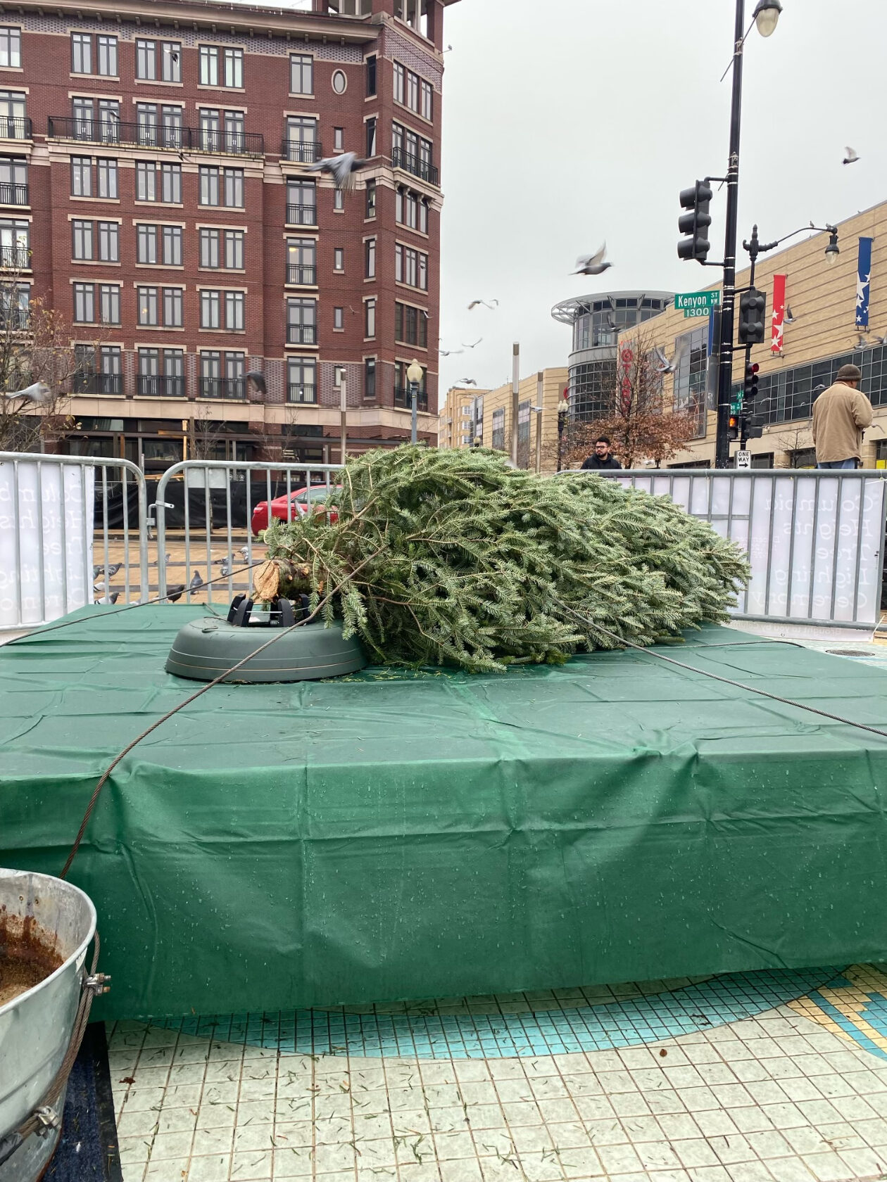 How did Columbia Heights Civic Plaza end up with such a holiday tree? The local nonprofit District Bridges is responsible for procuring the tree, as well as general maintenance and safety around the plaza, and couldn’t get a donor as they did in years past, according to its executive director Brianne Dornbush. The nonprofit ended up getting the tree at a discounted rate from a past partner and local business, Logan Hardware.
