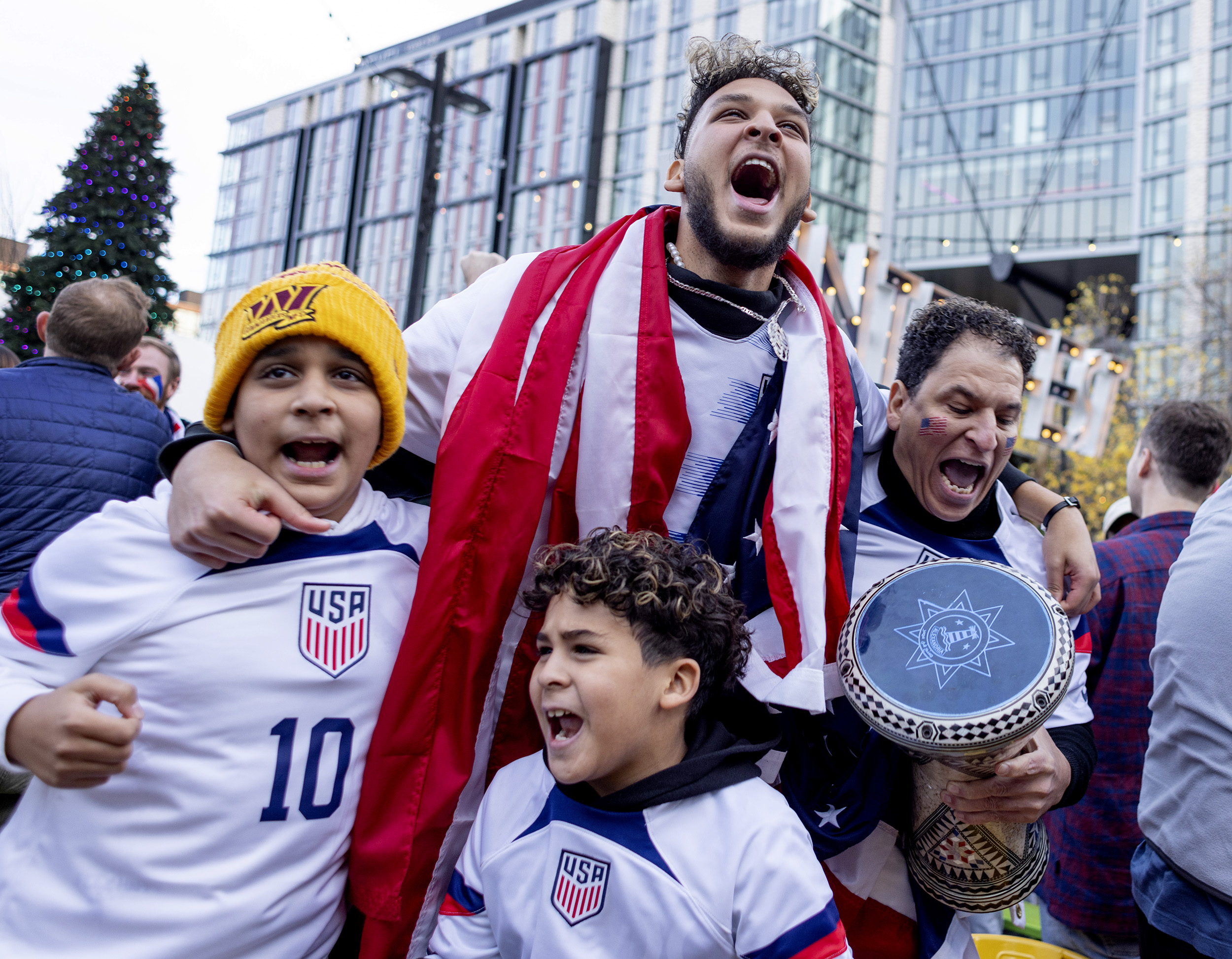 Youssef Ibrahim hugged his father Hesham Ibrahim, right, and his brothers, Adam Ibrahim, 7, below, and Abdaloah Ibrahim, 10, on left, after the USA won the match 1-0.