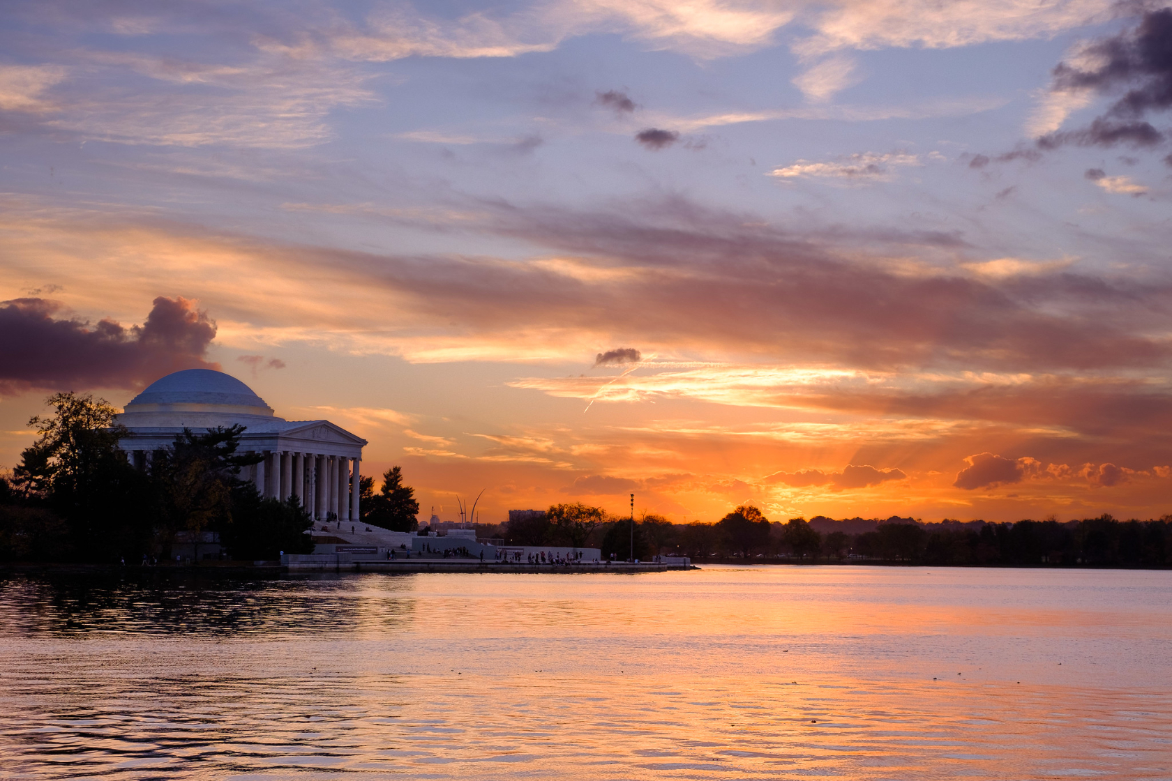 Three 30-something professional colleagues walking through Navy Yard at 7:30 p.m. on a Tuesday: