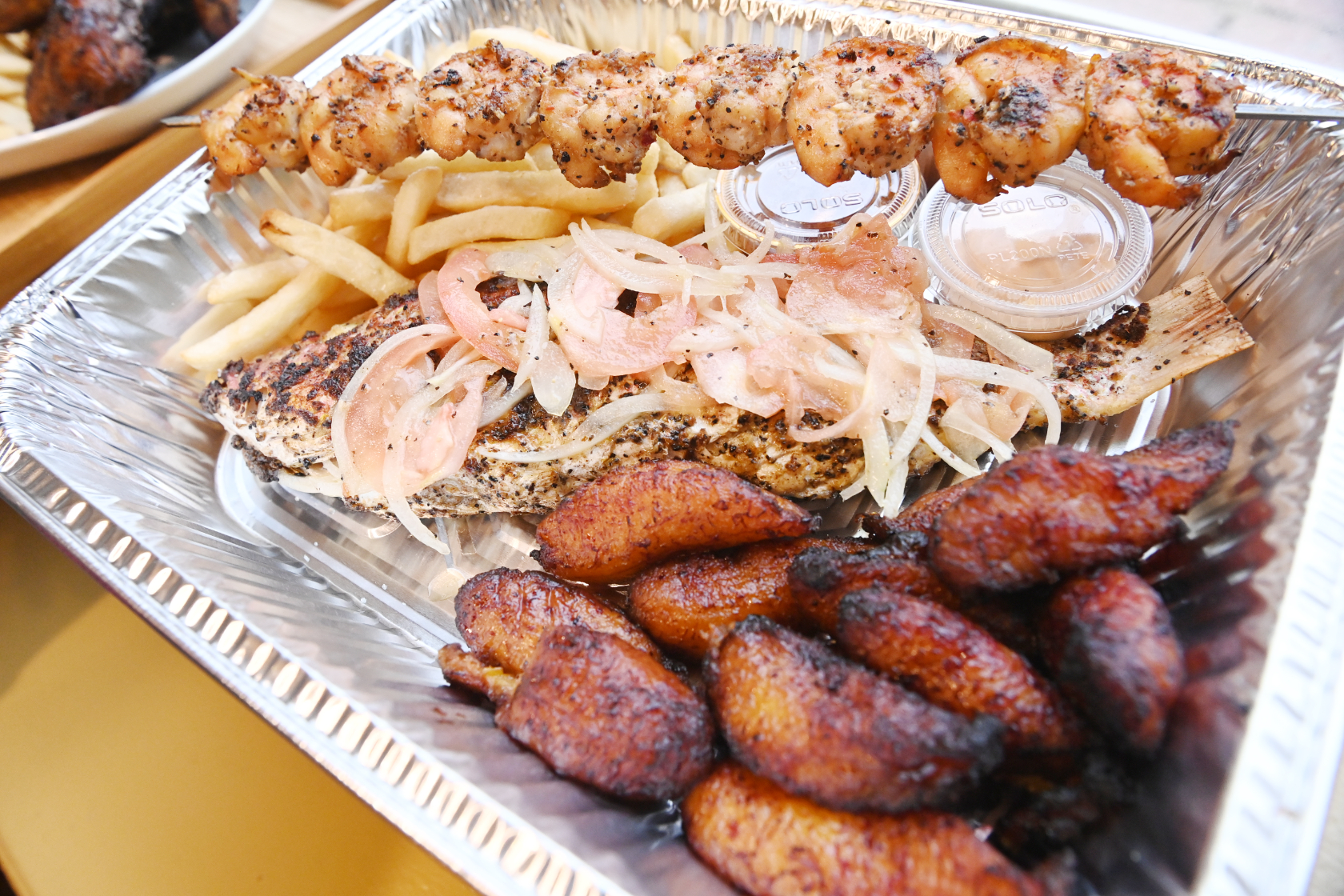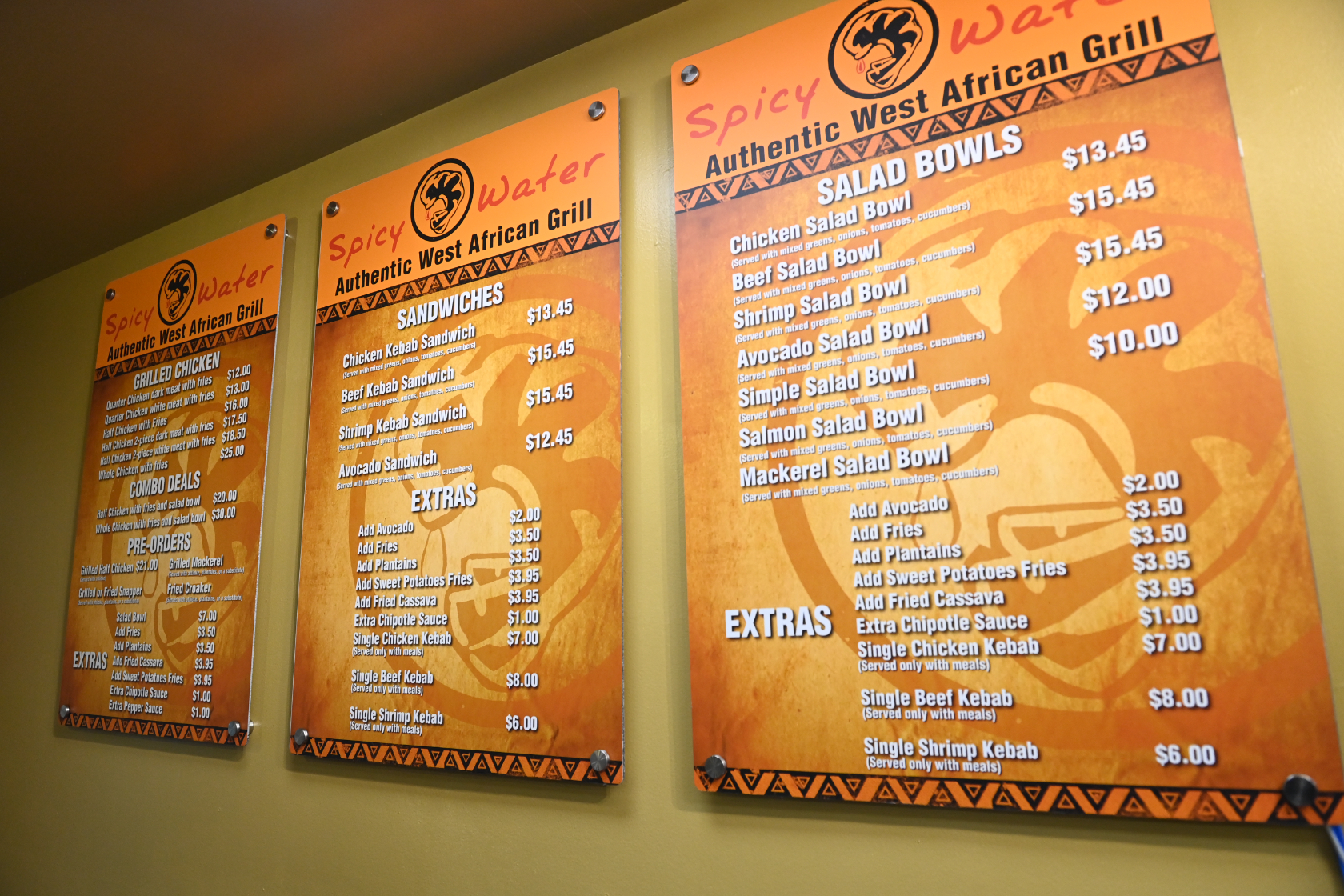 In addition to the chicken, Spicy Water African Grill also serves beef and shrimp kabobs on sticks, in sandwiches and in salad bowls. You’ll also find a traditional Ivorian dish, attiéké — fermented cassava pulp — on the menu as a side to the proteins. And for vegetarians, there are meatless options. Prices range from $3.50 for sides up to $30 for a whole chicken with fries and a salad.