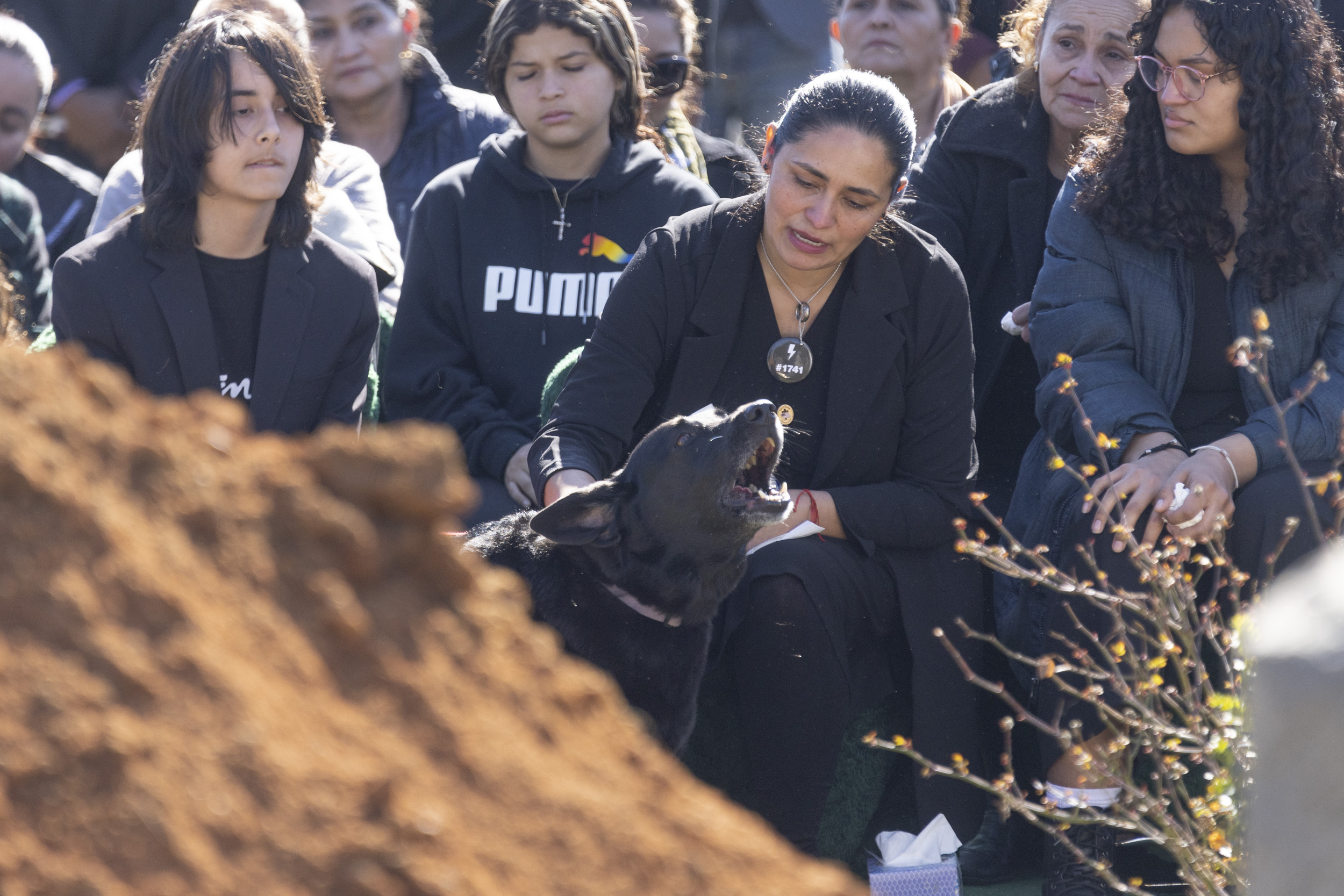 The family’s German Shepard, Duke, joined the graveside service and barked as Cunningham’s casket was lowered into the ground.