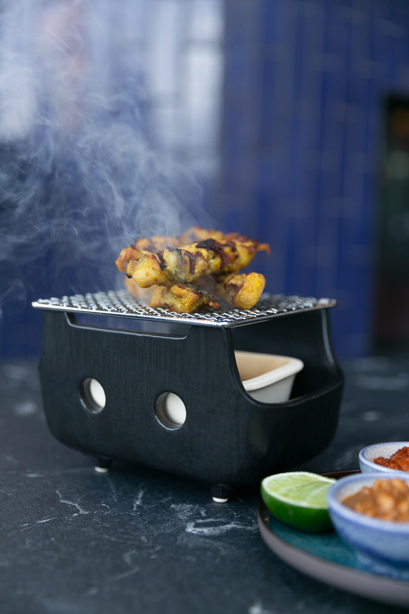 For some dishes, he chooses to stay traditional: the chicken satay is a recipe from his father-in-law who operates a hawker specializing in satays in Singapore, is classic with flavors of ginger and lemongrass and served with peanut sauce.