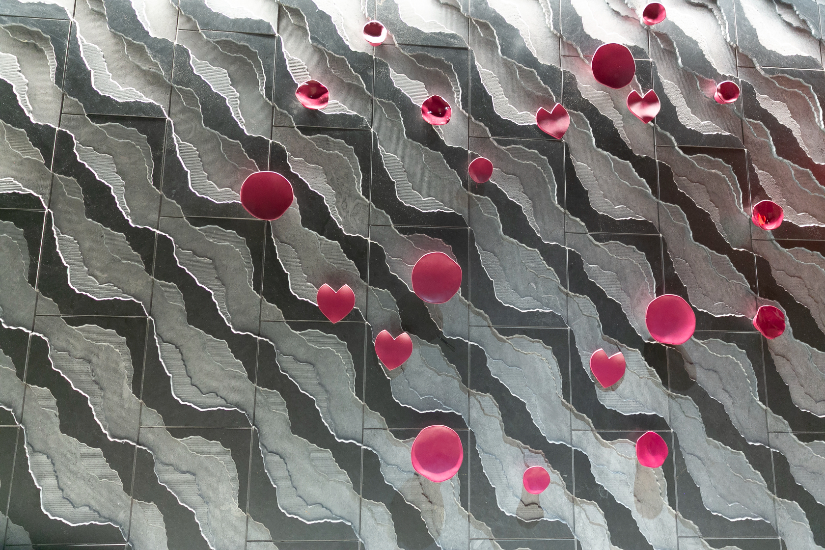The restaurant, located in one of several new spaces carved out of the malls’ former Macy’s store — including a new movie theater and a Bowlero — seats 250 with room for 170 guests indoors and 80 on the patio. The grandiose indoor space is expansive; soaring 30 foot ceilings that suspend an impressive floral art installation, and a sculpture of a merlion — the official mascot of Singapore, which has the head of a lion and the body of a fish — anchors the outdoor patio.