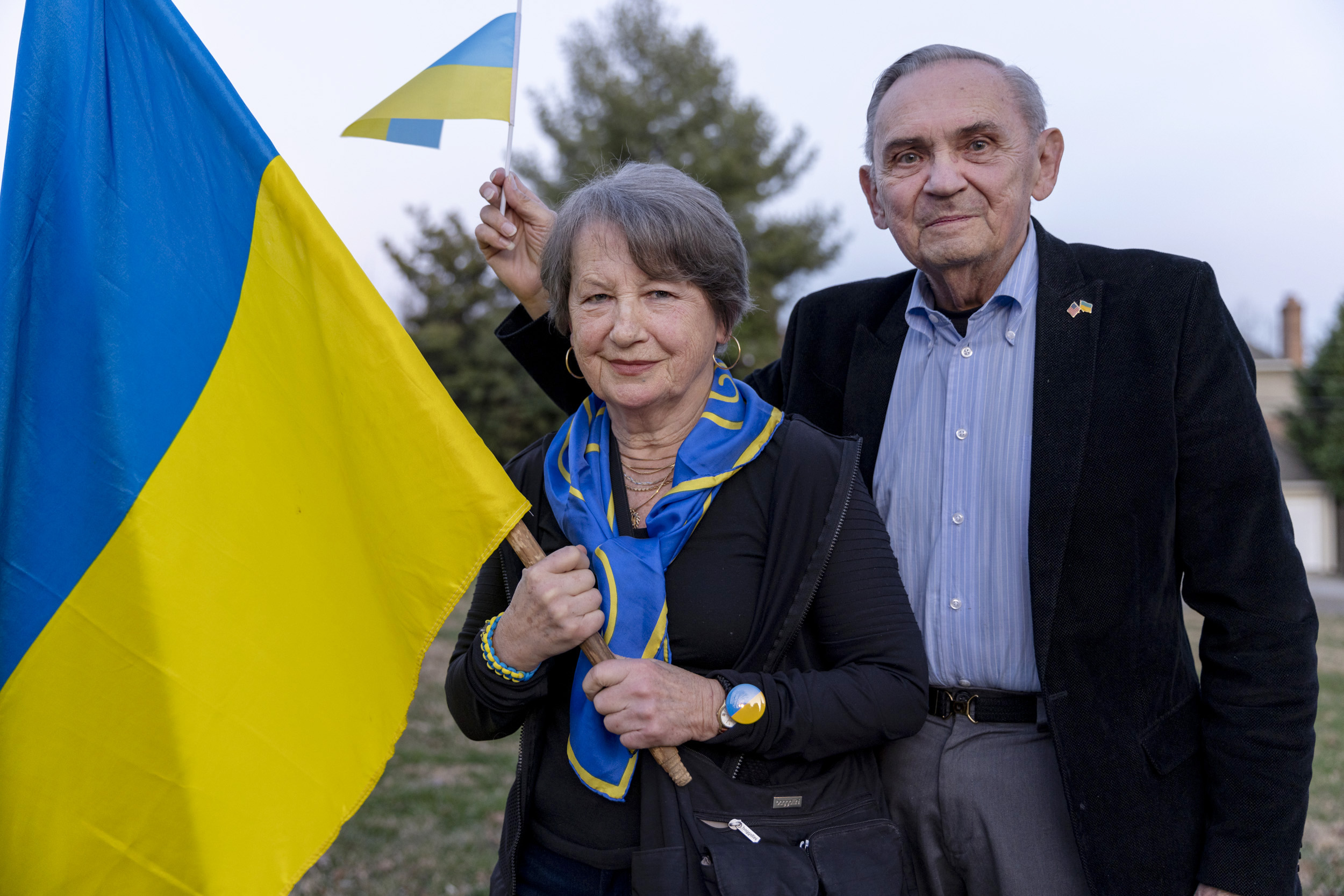 Leisa Bihun and her husband Andrew say they felt obligated to come out. The pair says they used to work at the American Embassy in Kyiv back in the 1990s. They carried the flag of Ukraine and wore blue and yellow pins as a show of support.