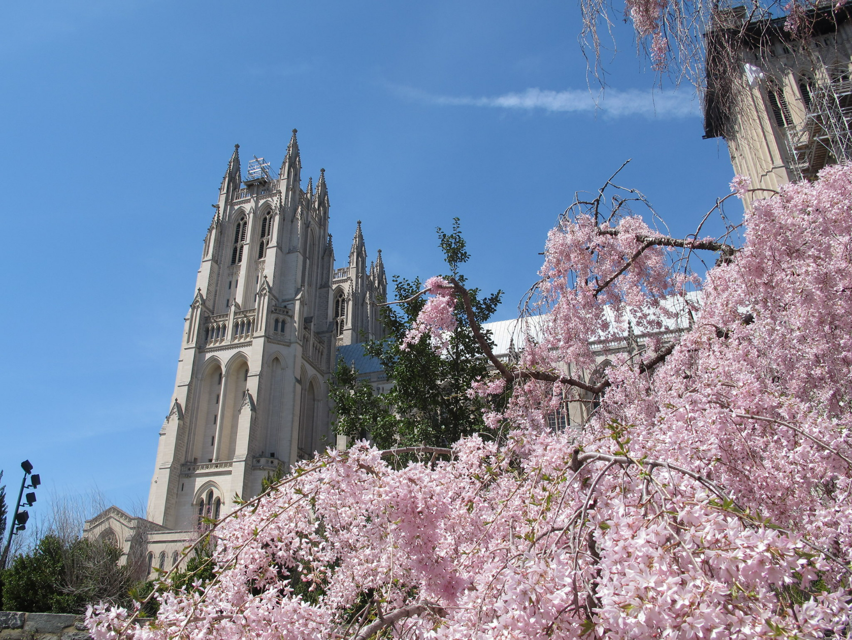CHURCH BLOSSOMS: The National Cathedral’s Bishop’s Garden has several cherry blossom trees and provides a beautiful backdrop. Venture up 36th Street to see the street lined with even more trees, one reader says. Or head up to the Basilica of the National Shrine of the Immaculate Conception, where several trees stand in the grass around the dome. (3101 Wisconsin Ave NW or Michigan Ave NE).