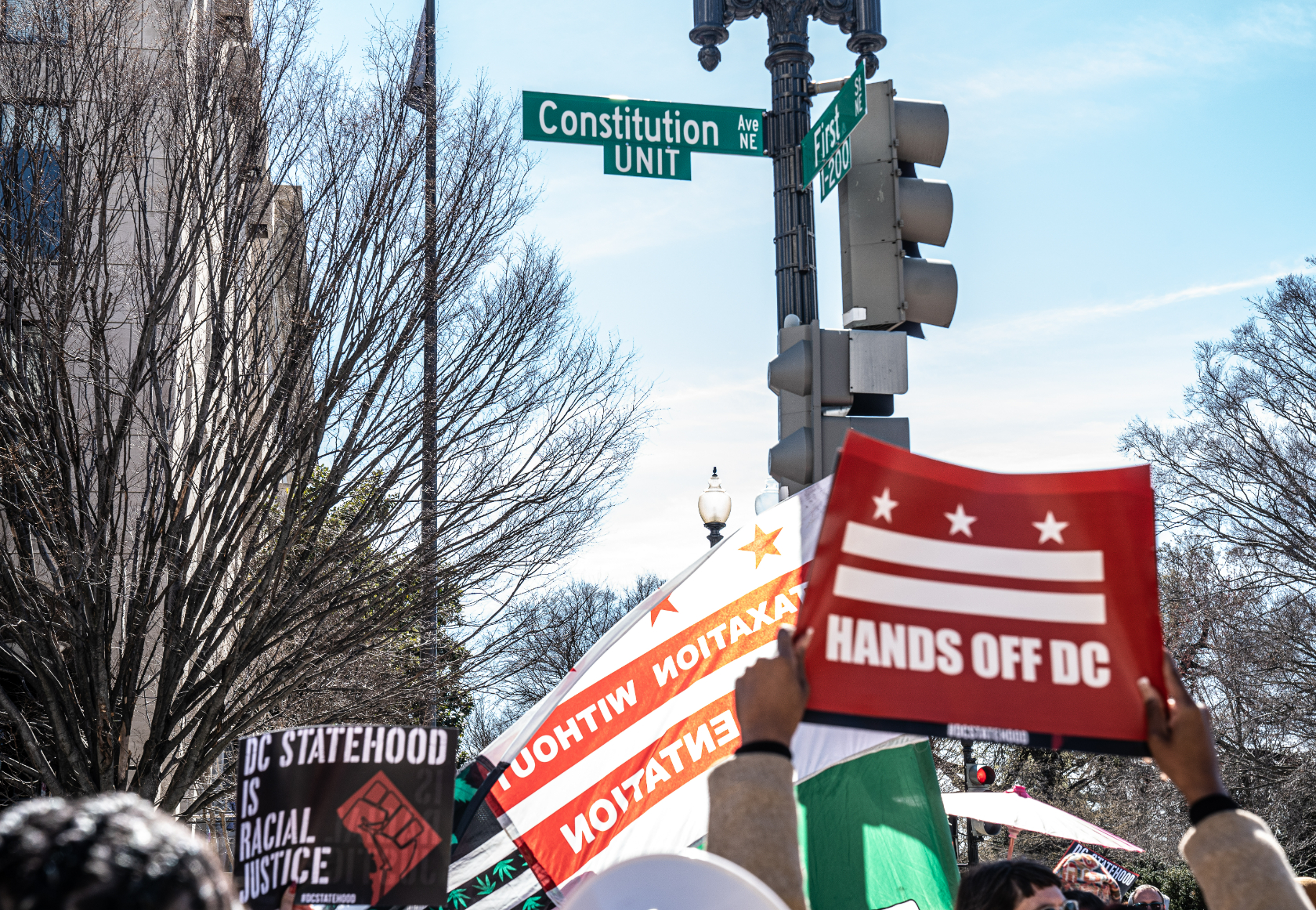 Ahead of the Senate debate, some 200 residents, activists, and elected officials rallied outside Union Station and marched to Congress, where they protested congressional interference in the city’s affairs.