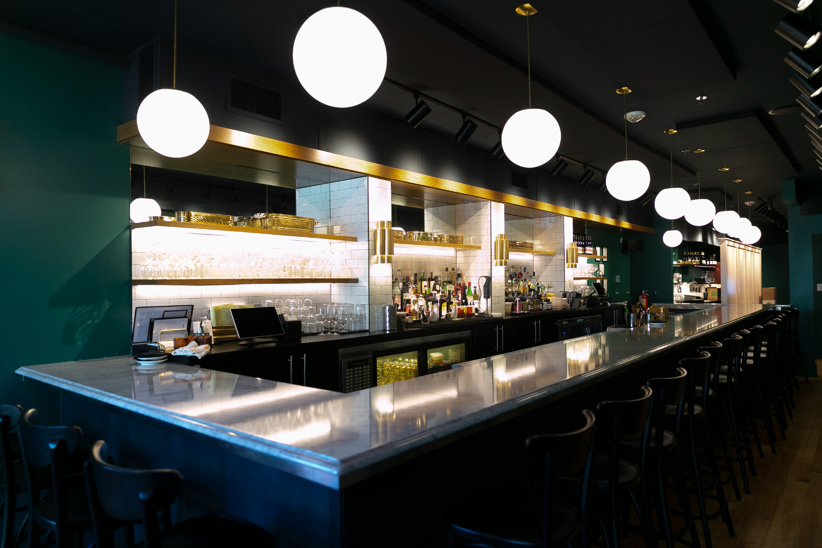 On the other side of the wall that divides the bar from the dining room is a space that can seat more than 80 guests. The compact size of the establishment is testament to the staff’s talent: They have to choreograph the delivery of the orders being prepared in the basement kitchen to the bar and the dining room floor in a timely manner.