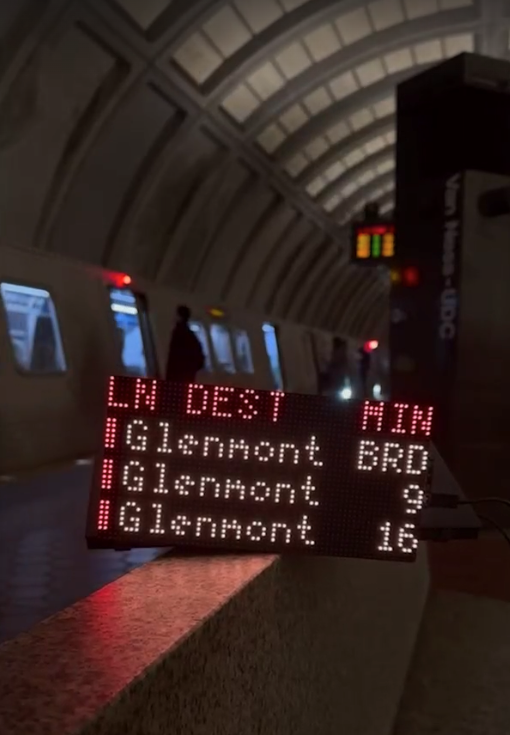 But in the past few years, form is catching up to function — some hobbyists want an easier way to monitor Metro train times before they leave their homes, rather than pulling out their phones every few minutes. So they’ve started creating mini-Metro boards that shrink the familiar LED screen down to a home or office-sized installation.