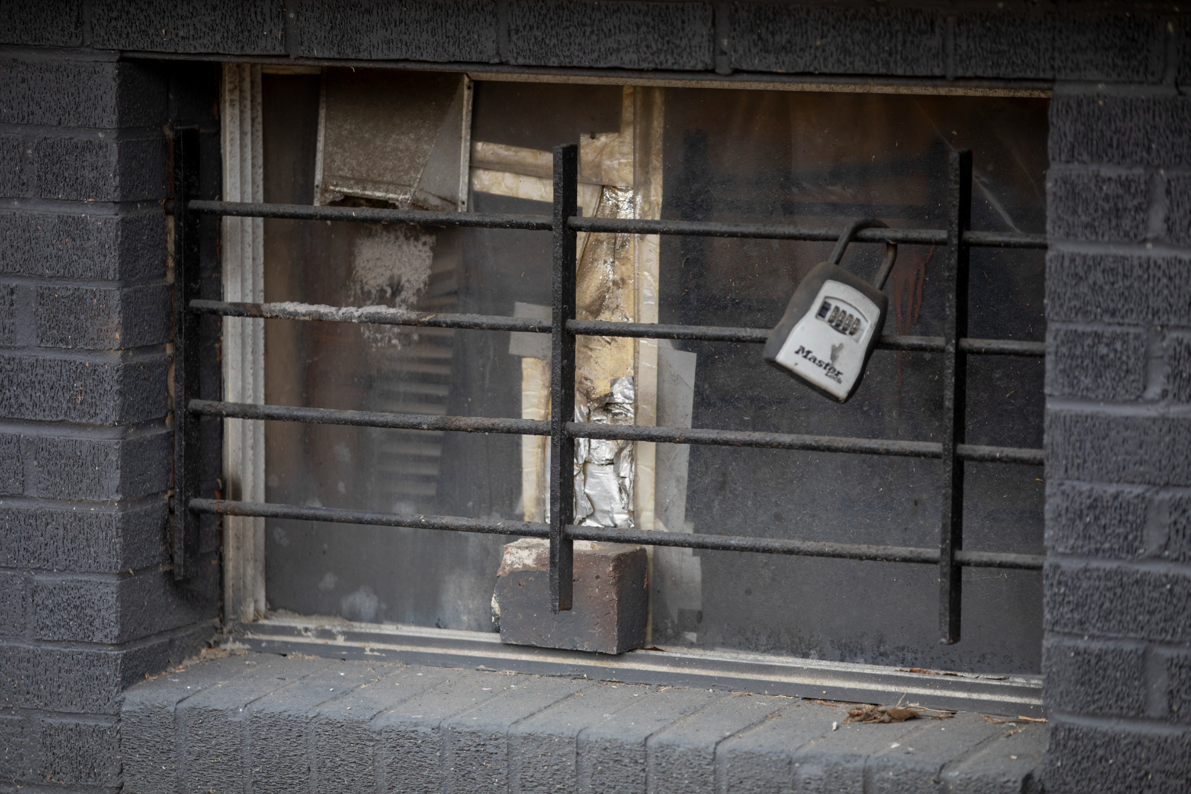 A year later, the walls are still lightly splattered in brown. Many of Dinkins’ belongings are piled into big plastic bags in the corner of the unit, next to the bed that very nearly takes up the whole apartment. Above her two-burner stove, soot streaks across the low ceiling.
