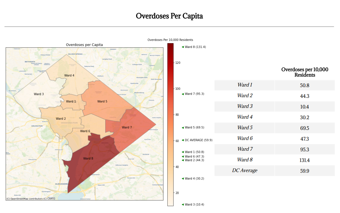 Bazron denied that there were zero local providers who submitted a bid, saying it was a “competitive” process. She added that the location for that center, as well as a forthcoming Columbia Heights location proposed in Bowser’s budget, were determined by looking at overdose hotspots with D.C. Fire and EMS data.