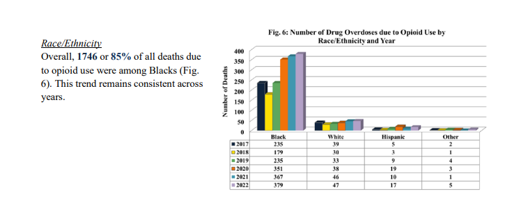 In 2022, the city saw 448 documented overdose fatalities – up from 427 in 2021, and 411 in 2020, according to the city’s medical examiner. Black residents accounted for nearly 90% of all documented overdoses last year. D.C. is even topping national records, recently surpassing West Virginia to lead the country in fatal drug overdoses per 100,000 residents, according to the Centers for Disease Control and Prevention.