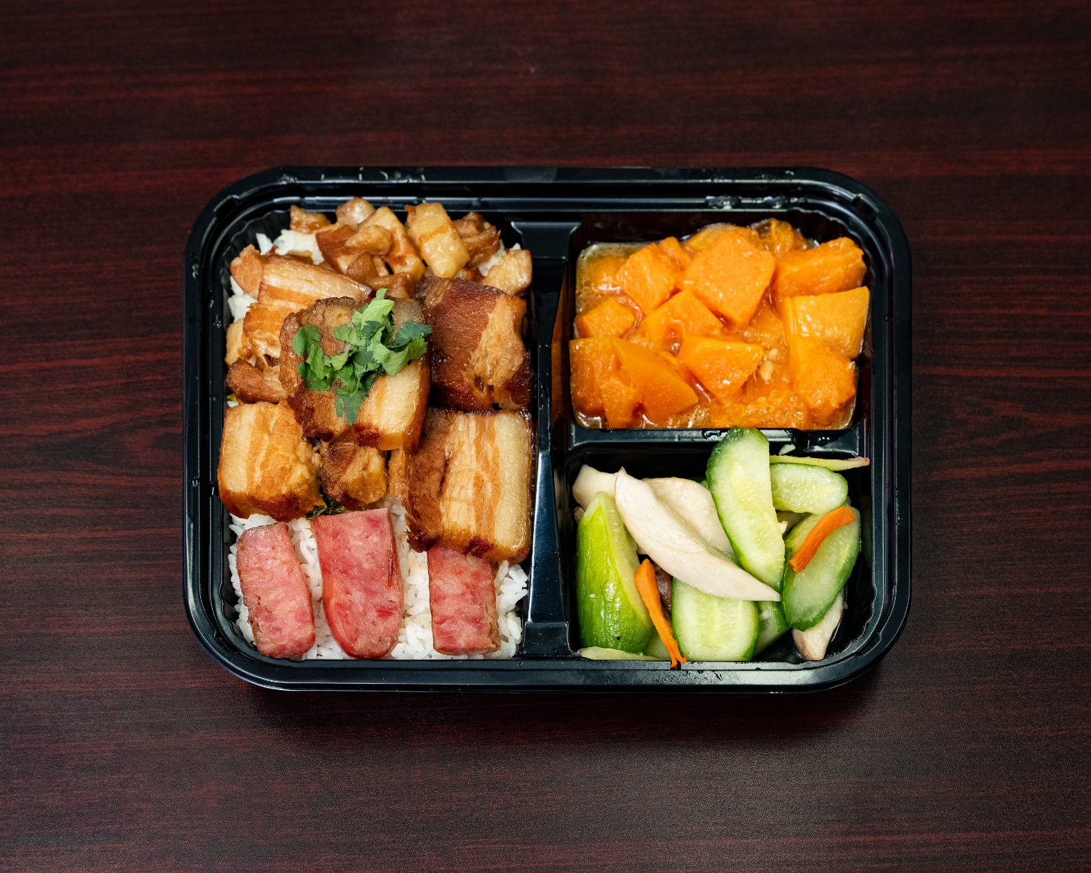 Section B is all bento boxes, which is considered a specialty of Hsieh’s home region of Taitung. (The area is known for the quality of its rice, and even has a bento museum.) Each bento always features bits of braised pork, sweet Taiwanese sausage, pickled dried radish, mustard greens on a bed of rice, and two sections filled with an additional veg and side of the day. These can include homestyle dishes like Taiwanese-style curry, tomato stir fried with egg, or mapo tofu.