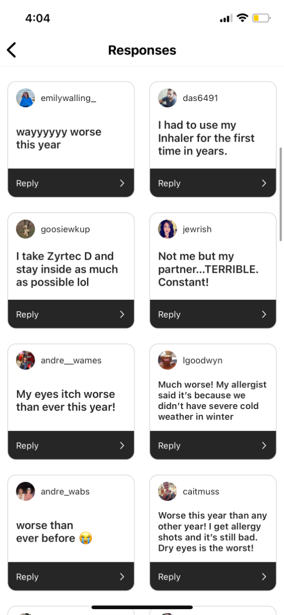 Tummala says that compared to three decades ago, there’s about 21% more pollen in the air, according to Proceedings of the National Academy of Sciences (PNAS). This is in part because the ground thaws earlier in the year now, so trees are able to grow earlier. Trees also use the greenhouse gas carbon dioxide, so when there’s more of it in the atmosphere, trees and plants grow more and produce more pollen.