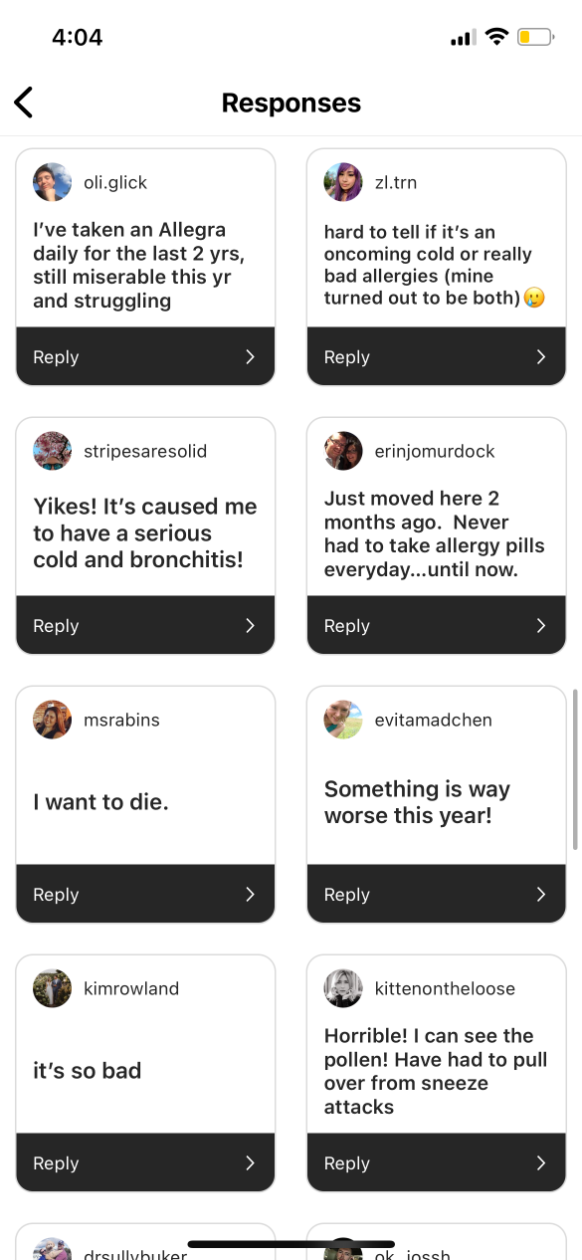 “There’s no consistency level to it. I can wake up one day feeling totally fine, and the next day I literally feel like I have the flu,” Soule says. “I’m lucky that I have a flexible job, but it’s not like I can just take a sick day whenever I have allergy symptoms.”