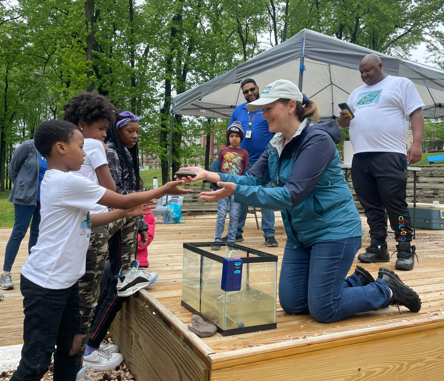 But as Richardson told DCist/WAMU, one of the best parts of holding these events is that the kids don’t even know it’s happening while it’s happening. To them, they’re just playing outside, tagging a mussel, cleaning up litter. She says she measures the results – albeit not scientifically – by hearing their laughter and watching them run around outside.