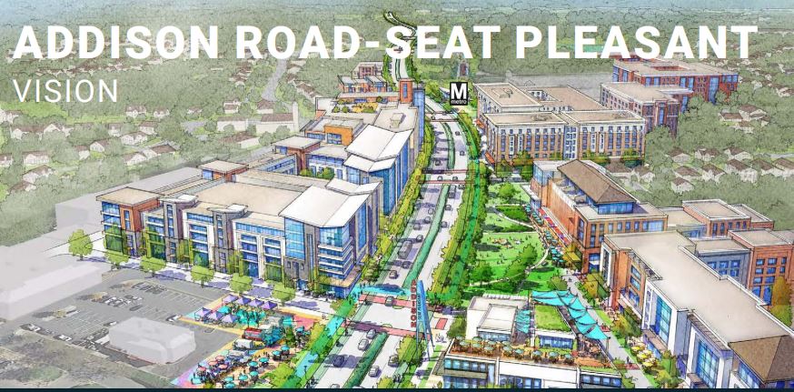 But the county executive’s vision goes beyond FedEx Field. It includes redeveloping or adding new development around four stops along the Blue Line, as well as making improvements to the Metro stations themselves, to Capitol Heights, Addison Road-Seat Pleasant, Morgan Boulevard, and Downtown Largo.