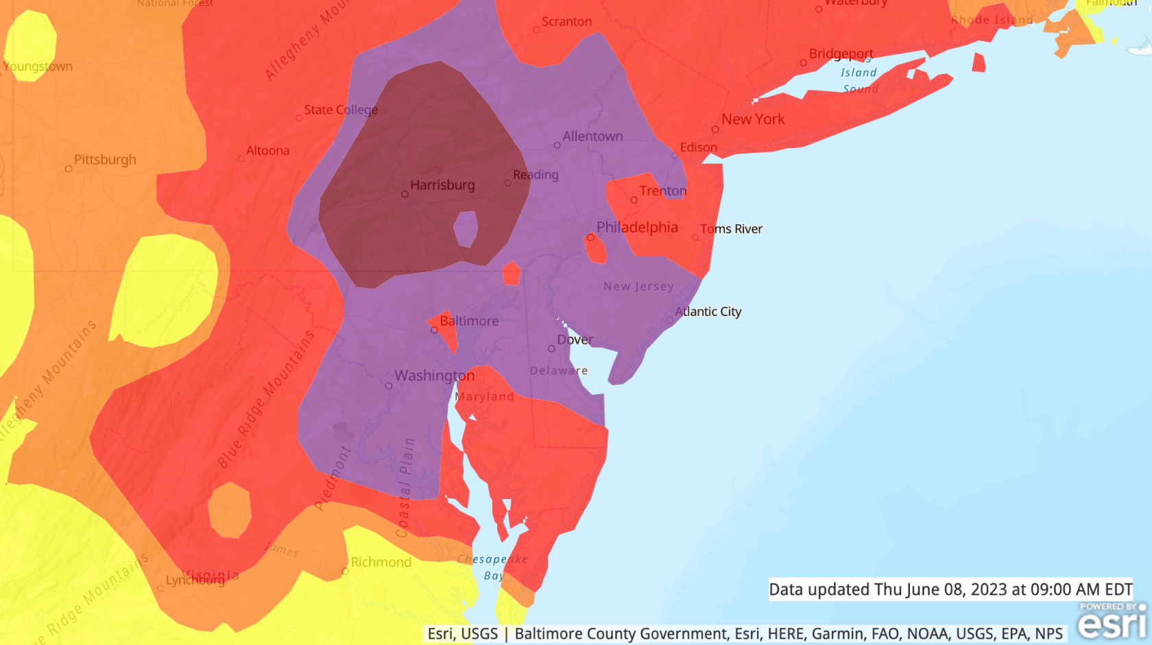 We’ve seen the photos from the West Coast for years — orange, smoky skies, everywhere from San Diego to Seattle. Now it’s happening here in the eastern U.S. as well, and scientists say this is probably not a one-off: bad air days are likely to become more common here due to climate change.